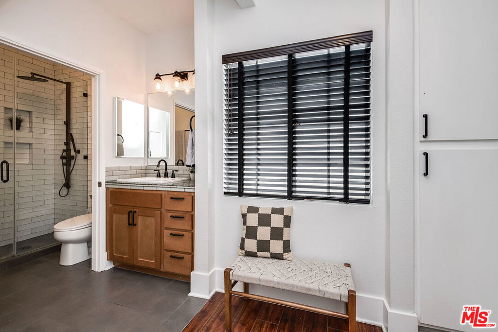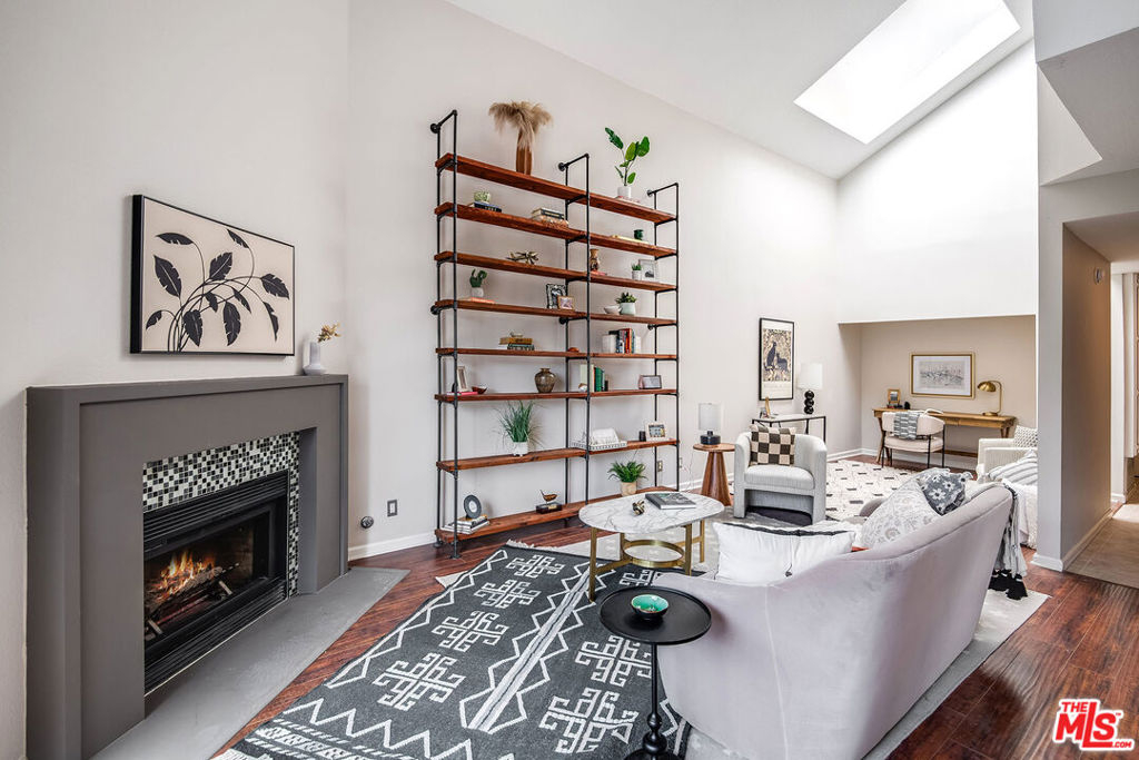 Updated contemporary Sherman Oaks townhouse! Bright and beautiful in one of the Valley's most coveted areas! Features a gorgeous modern palette and soaring ceilings with a large skylight. Entertainer's two-story open living and dining areas boast breathtaking windows, fireplace, laminate wood flooring and balcony overlooking spacious courtyard. Upgraded modern kitchen features stainless steel appliances, quartz tops and great storage! Off the living room is an open den (or add wall/divider to create 2nd bedroom/office) with closet. Full updated bathroom and side by side laundry finish out the first floor. Venture upstairs to find a spacious loft bedroom overlooking the living room that includes a walk-in closet and en suite custom bathroom. To compliment this amazing home is an HOA with high reserves and amenities that few communities have! Two resort-style pools and hot tub, new upscale patio furniture, workout room with new equipment, new sauna, a rec room that can be reserved for private events, and restrooms with showers. Dues also include earthquake insurance, DIRECTV, high speed internet, water and trash. Two tandem parking spaces and storage shed in gated parking garage. Enjoy this amazing, well-maintained complex, and quiet location set away from the road. Ample visitor parking around complex, including a dedicated visitor parking lot, and walking distance to numerous restaurants and shops on Ventura boulevard!! We are ready to welcome you home!