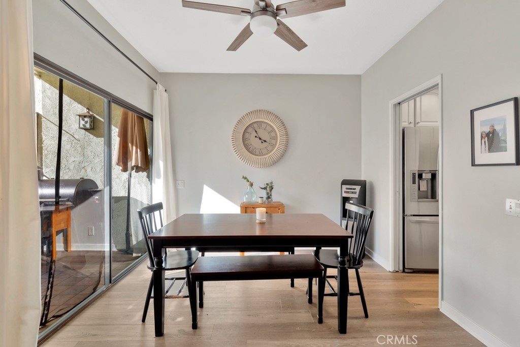 This spacious 2 bedroom, 2.5 bath townhouse is conveniently located just one block from Ventura Blvd between Woodman Avenue and Coldwater Canyon. Walking distance to local restaurants, shops and the highly rated Dixie Canyon Ave Elementary. The kitchen includes bright white cabinets, easy to clean granite counter tops, premium appliances (Viking, Miele, etc.), plantation shutters, and plenty of storage. Off of the kitchen is a dining room that opens to living room with plenty of windows and a balcony that make the space bright and airy. The living room includes a marble tile fireplace with wood mantle and a separate shelf/cabinet area that can easily be made into a wet bar. The main floor also includes an updated half bath convenient for guests. Upstairs the large primary bedroom has vaulted ceilings, plantation shutters, natural light, spacious en suite with dual sinks and a walk-in closet. The additional bedroom comes with custom built-in cabinetry/closet and private balcony space. Across from the additional bedroom is a full bathroom perfect for guests. The unit has direct access to unit from the garage, making it convenient to transport your groceries, etc. The bottom floor off the garage has ample space for additional storage as well as washer/dryer hookups for convenient in-unit laundry. Feel confident in knowing a new roof was re-done in 2020. The complex has a small backyard space shared by the four units. The secure fenced space is private and safe for small pets to run around and also includes fresh citrus trees for free lemons!