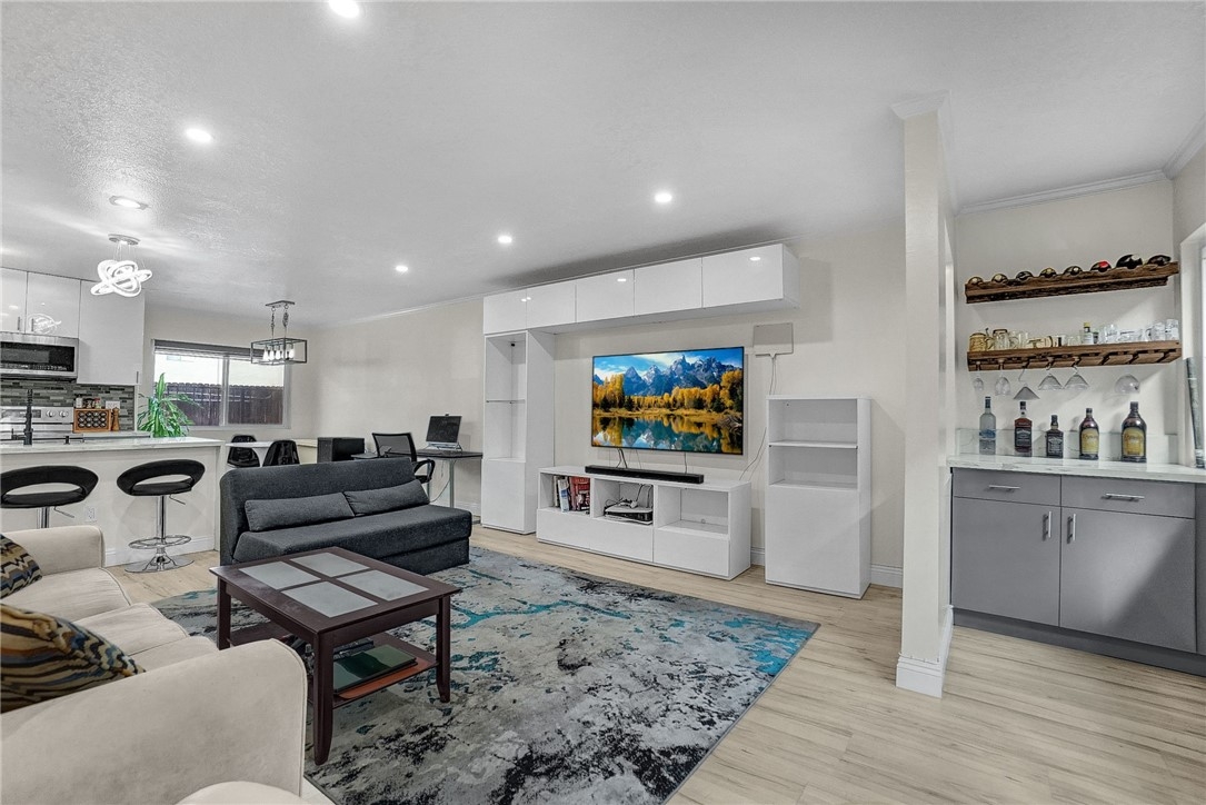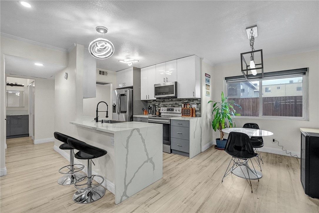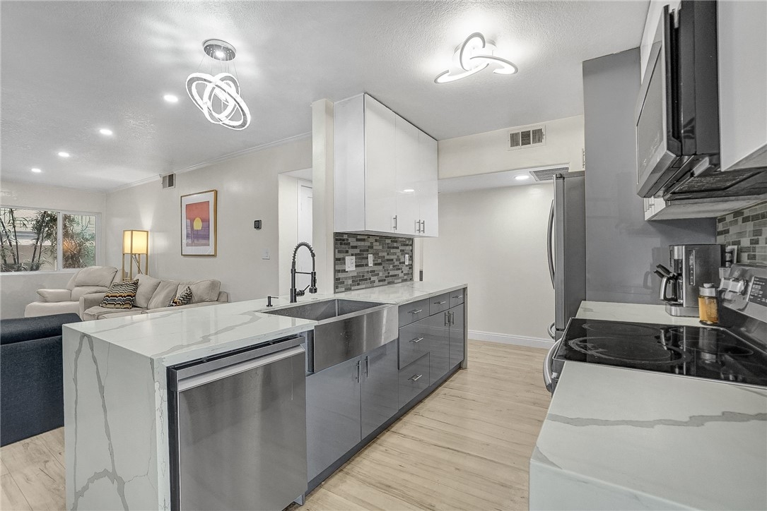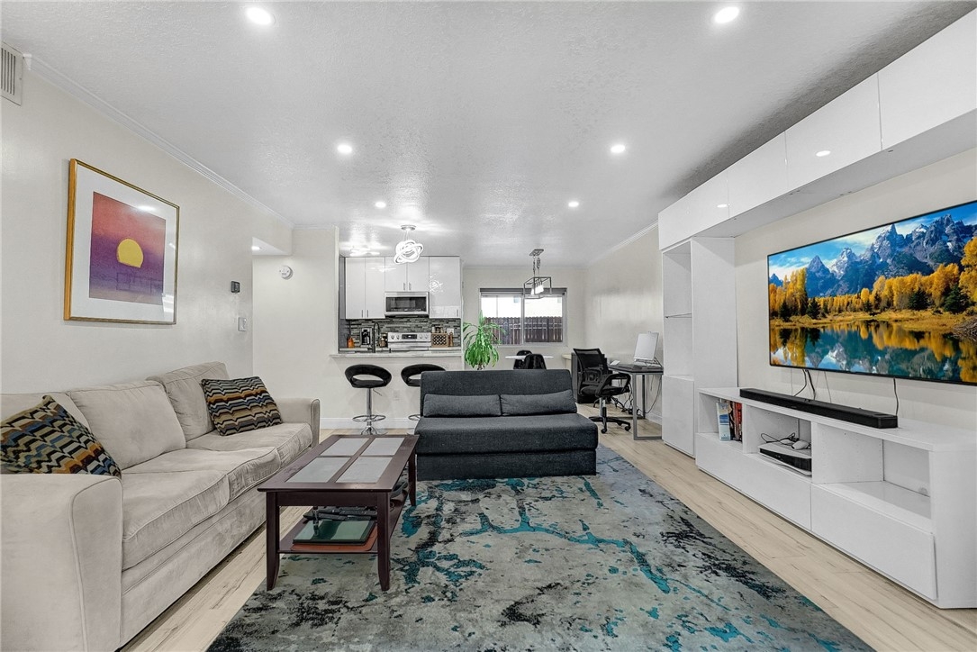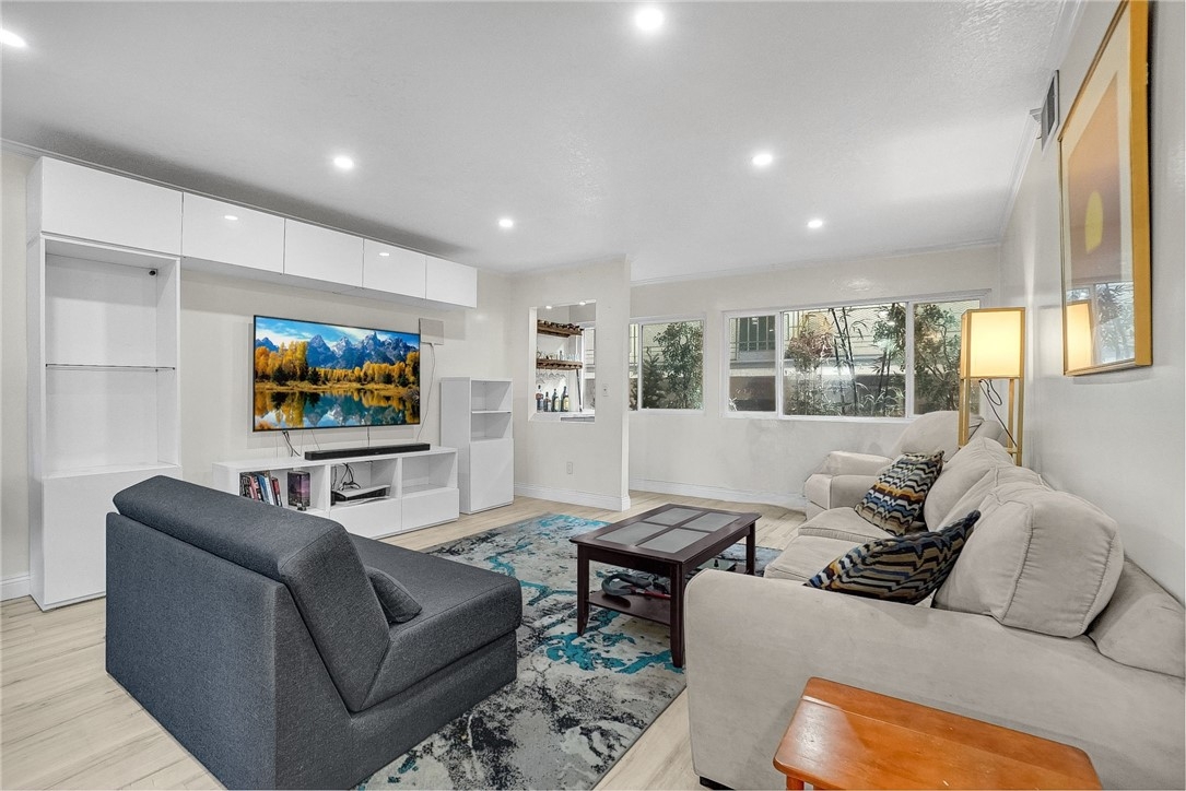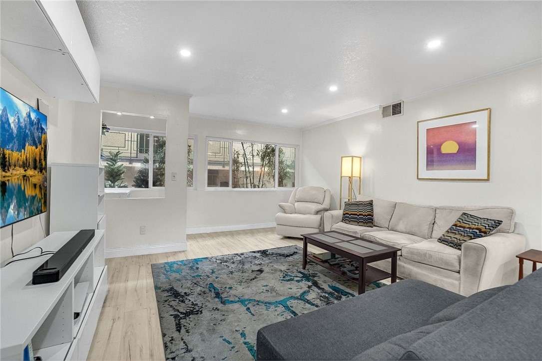 Welcome to your personal oasis of modern luxury! This stunning 1 bed, 1 bath condo unit offers a blend of sleek design, thoughtful upgrades, and unbeatable convenience, making it the perfect place to call home. Prepare to be amazed by the remodeled interior, where every detail has been carefully curated to create an atmosphere of contemporary elegance. From the moment you enter, you'll be greeted by gleaming hardwood flooring that flows seamlessly throughout the open-concept living space, setting the stage for stylish living. The kitchen is a chef's dream, featuring a waterfall countertop island that not only adds a touch of sophistication but also provides ample space for meal prep and entertaining. Smart home enabled devices elevate the experience, allowing you to control lighting, temperature, and more with just the touch of a button. Outside, the community amenities are equally impressive. The controlled access ensures peace of mind, while the ground-level pool offers a refreshing escape on warm summer days. Whether you're lounging by the pool or exploring the vibrant neighborhood, you'll find that everything you need is right at your fingertips. This condo is conveniently located near shopping, restaurants, and major freeways, providing easy access to everything the city has to offer. With the 101 and 405 freeways just moments away, commuting is a breeze. Don't miss your chance to experience the height of urban living in this stylish condo unit. With its remodeled interior, smart home features, and unbeatable location, it's the perfect place to live, work, and play. Welcome home!