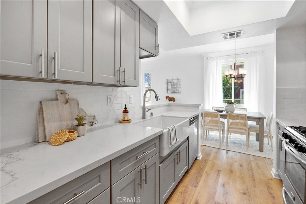 Chic, stunning, and luxurious newly renovated 3 bed 3 bath corner unit condo in the prime area of Sherman Oaks! Zoned to Dixie Canyon Elementary Charter School this sophisticated home offers northeastern views and lots of light, with a cool, modern, and fresh design. Home features over 1400 sq ft of living space, high ceilings, two primary suites, and an additional bedroom and bath perfect for families, roommates or work from home life. Unique features include a custom wine bar with wine refrigerator, Nest thermostat, spacious in-unit laundry room with side by side washer and dryer, and a wrap-around patio accessible from the living room and primary suite. The eye-catching designer kitchen includes new cabinetry, quartz countertops, Samsung refrigerator and farmhouse sink. Two side by side parking spaces in the secured garage. Enjoy privacy being elevated above the garage with one shared wall with the neighbors patio. Located one block from Ventura Blvd; close to restaurants, gastropubs, boutiques and the new Whole Foods. Convenient access to Beverly Hills and West Hollywood via Coldwater Canyon, and easy access to the 101 freeway. View this home before it’s gone!
