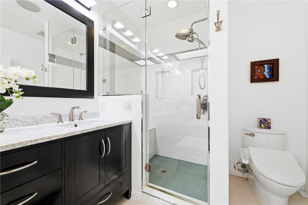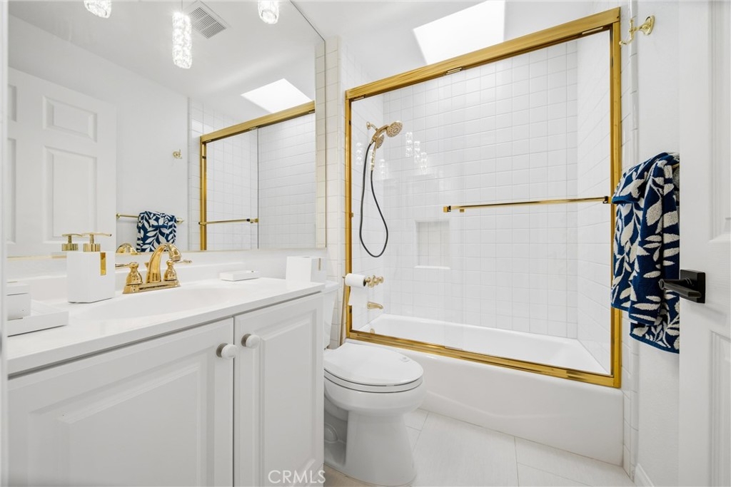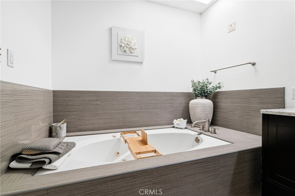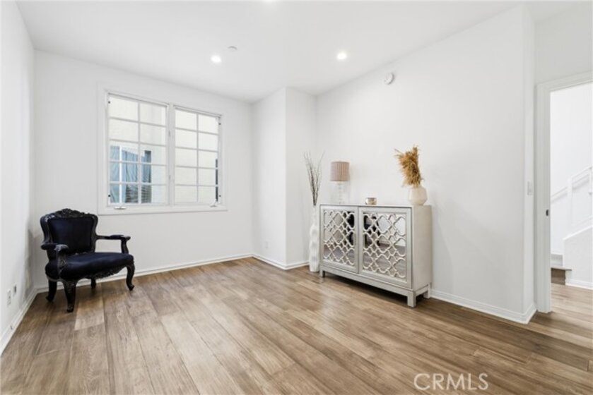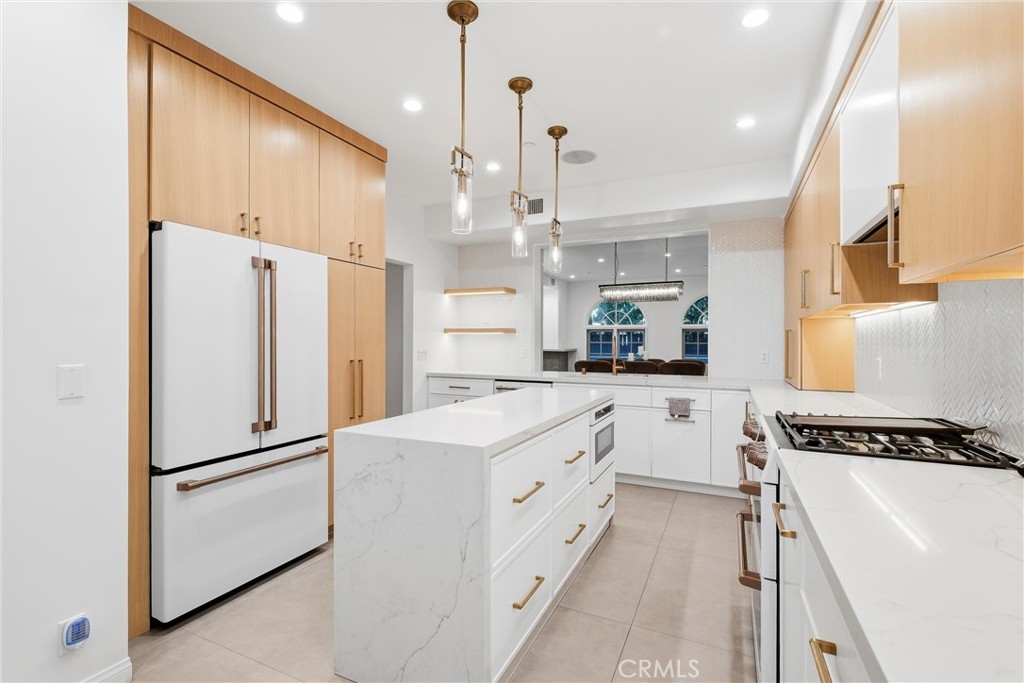 Spacious, bright, and beautifully updated, this 2-bedroom plus OFFICE townhome is ideally situated on one of Sherman Oaks’ most sought-after blocks between Stansbury and Hazeltine, just moments from the shops, dining, and lifestyle amenities along Ventura Boulevard. A formal foyer welcomes you into a thoughtfully designed home featuring in-ceiling surround sound, multiple private patios and balconies, direct access to three parking spaces, and a large in-unit laundry room updated in 2024. The oversized designer chef’s kitchen, remodeled in 2022, showcases custom wood cabinetry, chevron tile backsplash, tile flooring, Café appliances, a generous center island with dining nook, and abundant counter and storage space, all accented by curated lighting and designer finishes. An elegant dining room flows seamlessly into the sun-filled living room, where Palladium-style windows crown French doors that open to a private patio—ideal for BBQs and al fresco dining. The redesigned powder room adds a touch of modern luxury with custom hardware and refined finishes. The primary suite is a serene retreat featuring vaulted ceilings, a sitting area, walk-in closet, and French doors leading to a private balcony with tranquil treetop views. The spa-inspired primary bath offers dual sinks and a recently remodeled soaking tub. The second bedroom includes a walk-in closet and an updated adjoining bath. An expansive rooftop deck provides nearly 180-degree views, perfect for entertaining or unwinding at sunset. Additional highlights include a tankless water heater installed approximately two years ago, quick access to the 101 Freeway and nearby canyon roads to the Westside, and close proximity to Ventura Boulevard dining, shopping, Ralphs, and the new Whole Foods. This meticulously maintained building renowned for its lush, mature landscaping and inviting curb appeal.