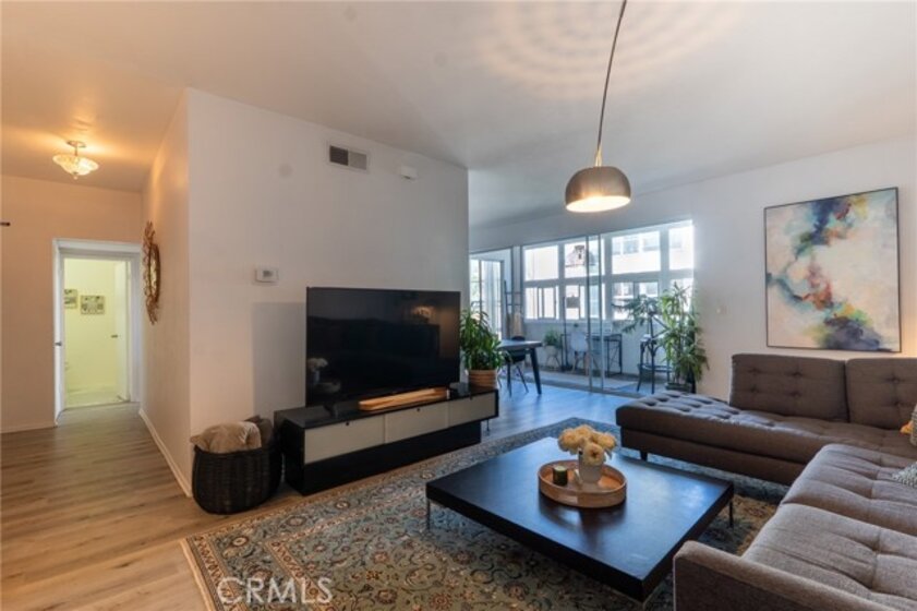 Located in the heart of Sherman Oaks, just one block south of Ventura Blvd, this bright and spacious 1-bedroom, 2-bath condominium is part of the highly desirable and luxurious Sherman Villas , one of the most sought-after buildings south of the Blvd, surrounded by multi-million dollar homes. Unit 216 enjoys a prime interior location overlooking the lush, resort-like courtyard with mature trees and peaceful greenery offering abundant natural light throughout.Enter through double doors into an inviting open-concept living and dining area that flows seamlessly into a charming sunroom overlooking the courtyard ideal for a home office, reading nook, or relaxation space. The galley kitchen features stainless steel appliances, including a new microwave, newer oven, refrigerator and dishwasher , tile countertops, and ample cabinetry.The generous bedroom features a beautiful floor-to-ceiling window that brings in natural light and greenery views, two closets including a newly built-in eight-door white wardrobe reaching the ceiling, and an en-suite bathroom with a nice-sized walk-in closet. A second full bathroom provides added convenience for guests.This well-maintained unit also includes newer laminate flooring throughout. Sherman Villas offers resort-style living with a swimming pool, spa, fitness center, and beautifully landscaped garden courtyard. The secure, well-managed building includes gated entry and one parking space in the underground garage.Enjoy unmatched urban convenience with neighborhood charm , just moments from Ventura Blvd’s best restaurants, cafes, boutiques, and Whole Foods, with easy freeway and Westside access.