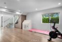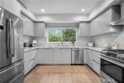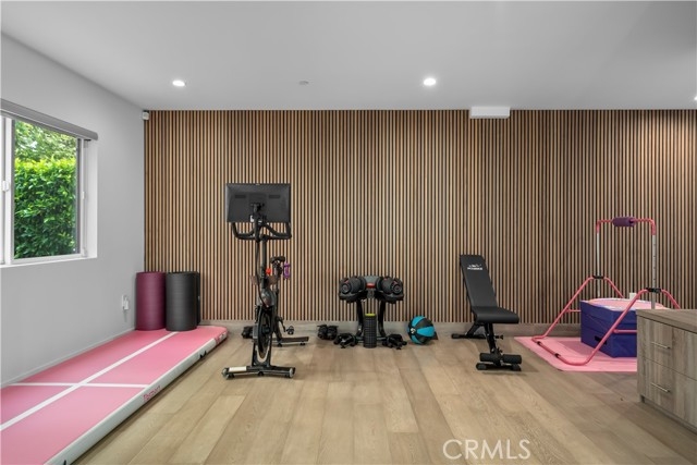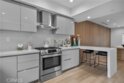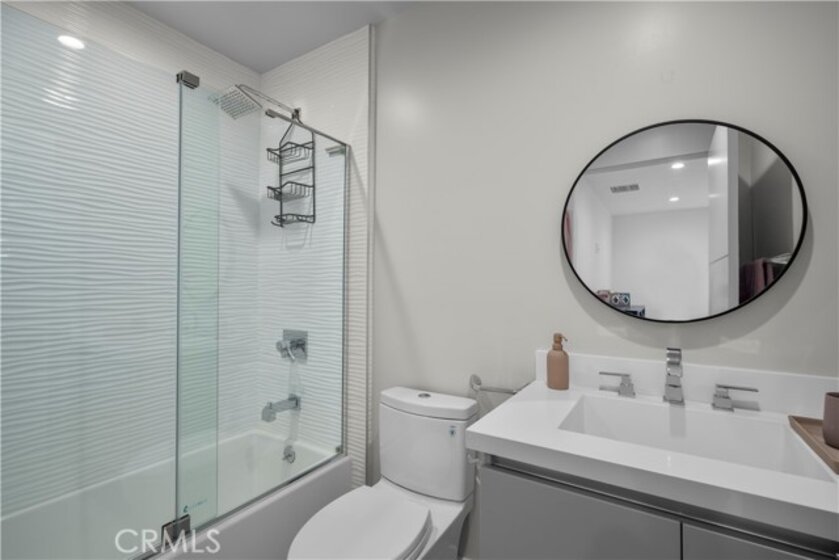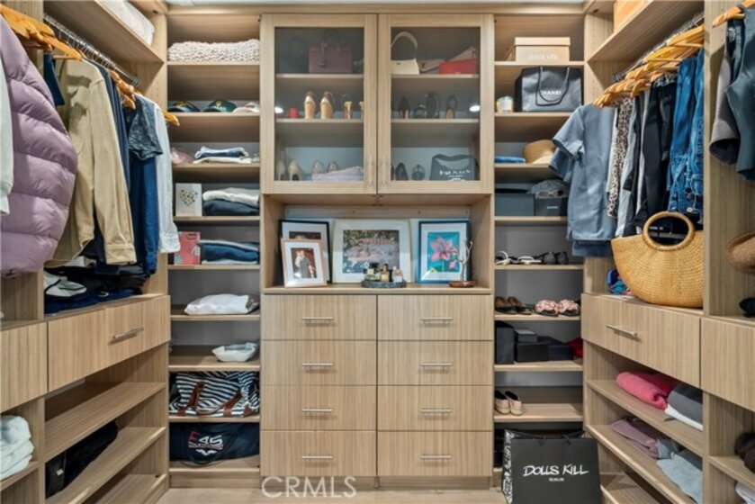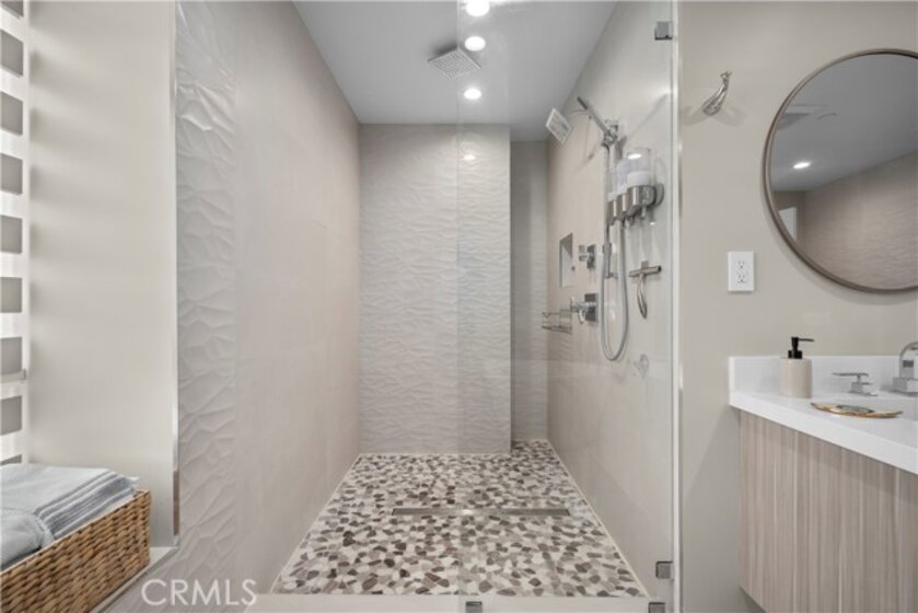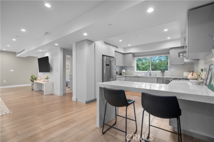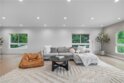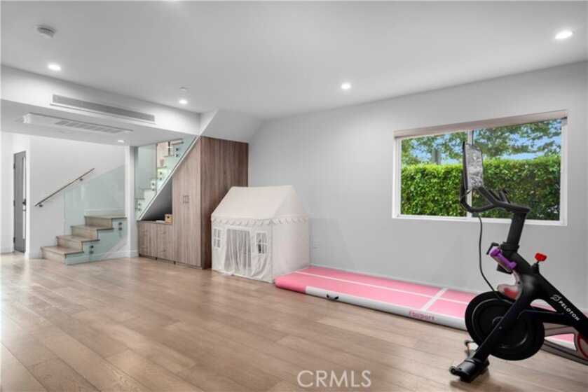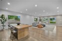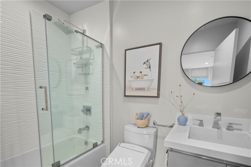 Elevate your everyday experience with this brilliantly designed living space that blends luxury with sleek functionality. Every inch of this home has been thoughtfully designed with custom, European-inspired millwork and architectural wall treatments that balance modern minimalism with depth and texture. The layout is equally impressive, starting with an unmatched entertainment level spanning forty-four feet of soothing ambiance from softly sunlit windows and a statement-making backdrop of white oak slats that adds organic depth to its modern minimalist vibe. An open dining space has room for your biggest dinner gatherings. It flows to a pristine kitchen with European-style slab cabinetry finished in luminescent lacquer for an ultra-modern aesthetic and clean lines, yet also functional with easy cleaning and deep, soft rolling drawers with room for all your favorite chef's toys. Upstairs, you'll find an expansive primary suite and a generous walk-in closet fully outfitted with custom organizers for maximum efficiency, and a luxurious en-suite bath for maximum relaxation. A floating double vanity with a natural wood veneer enhances the airy spa-like vibe and seamless drawers, maintaining the home's minimalistic design. The freestanding oval soaking tub, set against a textured accent wall, creates a spa-worthy focal point that invites long, luxurious soaks. Downstairs, you'll find the perfectly versatile room to be reimagined to that unique space you've been dreaming of; an in-home movie-theatre room, a family fitness gym, a bowling game room with bar, or even a convenient in-home business consult, and the freedom to reimagine it as your needs evolve. The three-car garage wasn't left out of this home's noteworthy design. Featuring EV parking, two entrance options, and a full-view garage door with frosted glass panels for a natural sunlit garage-glow that you never knew you needed. Manicured privacy hedges complete the corner-lot curb appeal, making this home a perfect blend of design and comfort for an elevated lifestyle.