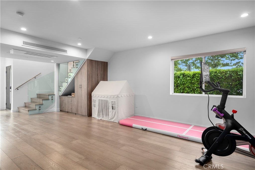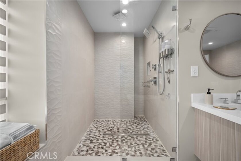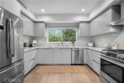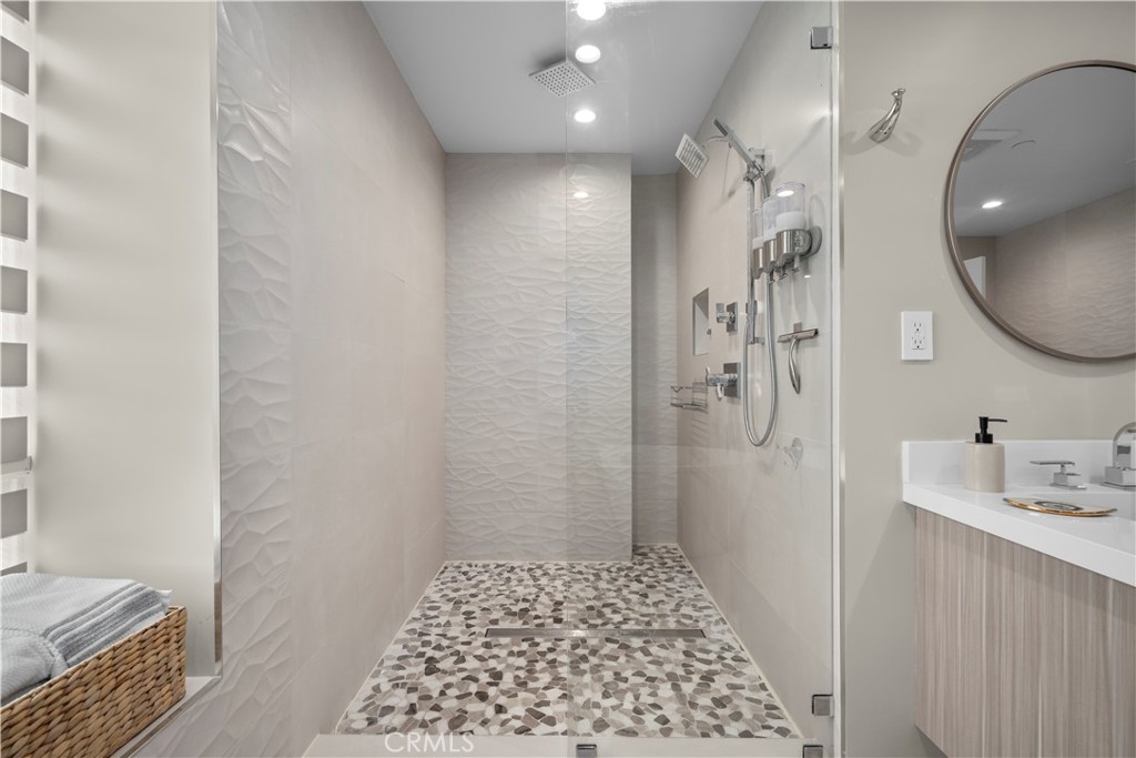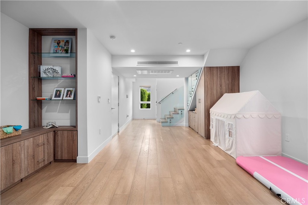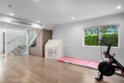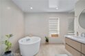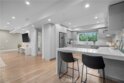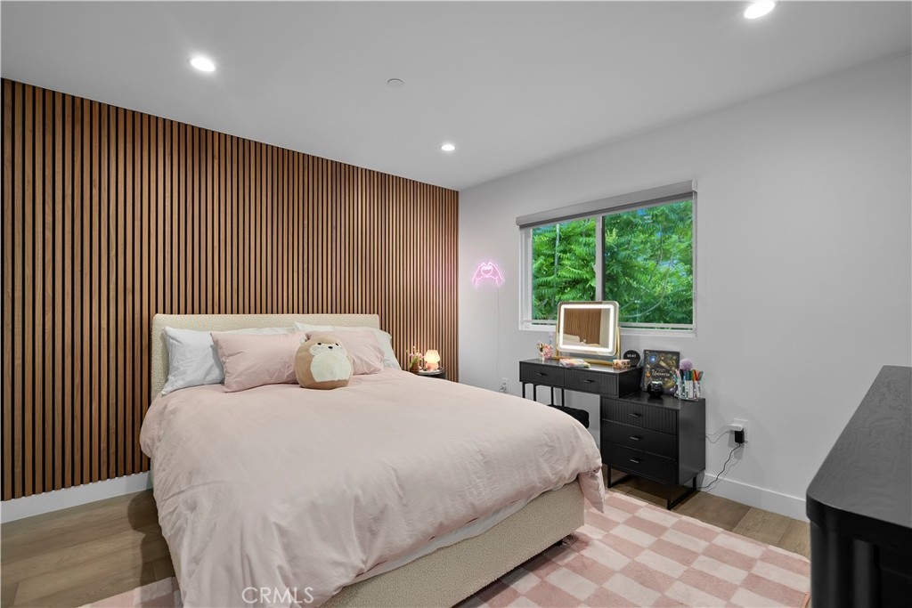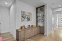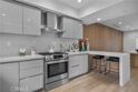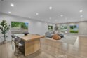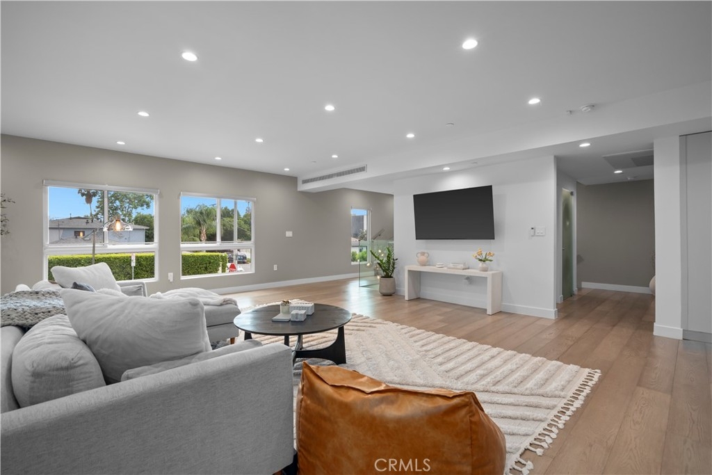 A stunning home designed to adapt to your needs. The main level is designed for gatherings, featuring a 44-foot entertainment area and expansive windows that let in warm natural light. An open dining area adds organic texture, with a white oak slat feature wall that pops beautifully against the pristine, European-inspired kitchen, which showcases sleek glass-paneled cabinetry, deep, soft-close drawers, a pull-out pantry, and an abundance of functional storage. The lower flex level is built into the home, so your space evolves with you and offers endless possibilities: a fourth bedroom with an en-suite bath, a home theater, a fitness room, an art studio, a game room, or a professional office, just to name a few. Upstairs, the primary suite is a serene retreat with a luxurious en-suite bath with soothing spa-like finishes, including a floating double vanity, a deep soaking tub, and gorgeous textured walls. The secondary bedrooms also feature their own en-suite baths and deep closet spaces with organizers. The garage wasn't left out of this thoughtfully designed home; a three-car layout includes EV-ready parking, two convenient entrances, and a full-view frosted-glass door that lets natural light glow through. Outside, manicured hedges frame the corner lot, completing the home’s stunning curb appeal. Every aspect of this beauty—inside and out—delivers an elevated, modern lifestyle defined by comfort, style, and functional living.
