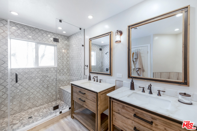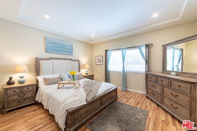 Exclusive architecturally designed renovated townhouse located in a highly desirable neighborhood of Sherman Oaks, south of Ventura Blvd. Light & bright living room w/ fireplace, high soaring ceilings, recess lights w/ glass walls, formal dining room & powder bathroom. Entertainer's dream home w/ fully renovated "Golden Triangle Kitchen", 5-burner chef's stove, pancake griddle,stainless steel appliances, quartz countertops, self-close cabinets w/ breakfast area & balcony. Top floor includes den/loft w/ fireplace, closet & bathroom leading outside to a captivating rooftop deck w/ wet bar & barbeque overlooking the mountain views. Downstairs has 2 master suites w/ a fully remodeled bathroom, adjacent to the second master suite w/ balcony. Ground level has a 3rd bedroom/office w/mini bar & shelves, side-by-side laundry room & bathroom. Private 2-car attached garage w/ lots of storage space, quartz countertop & dumbwaiter. Includes earthquake insurance. Close to all, shops & restaurants.