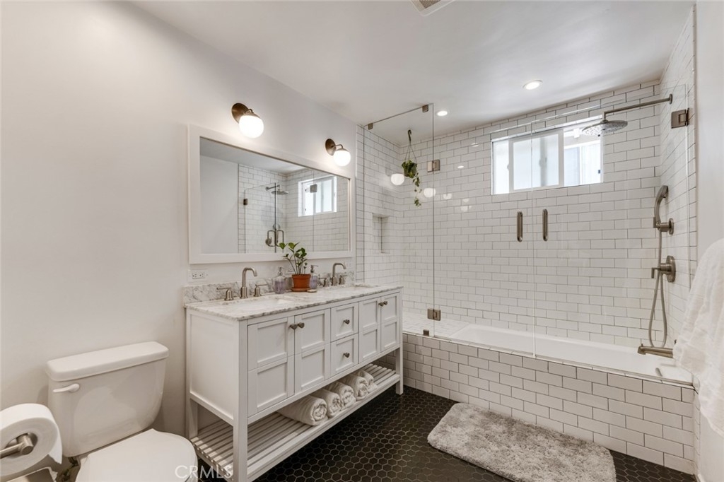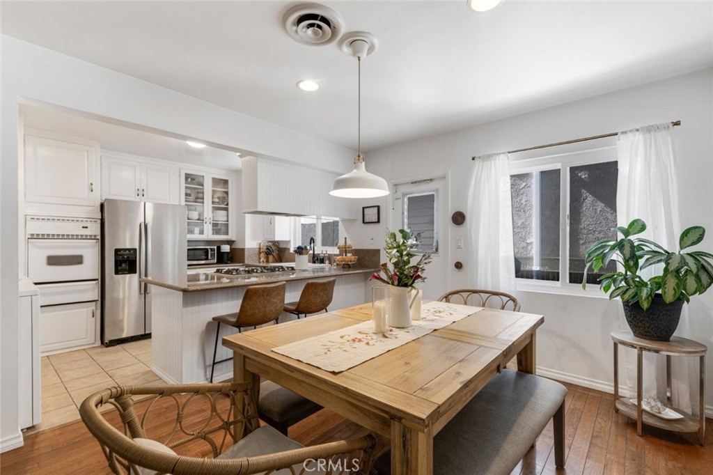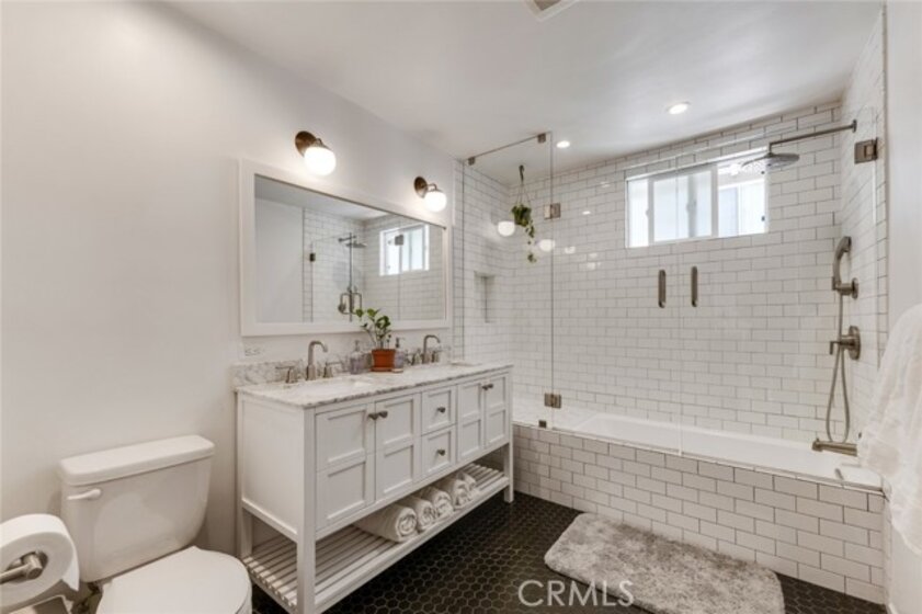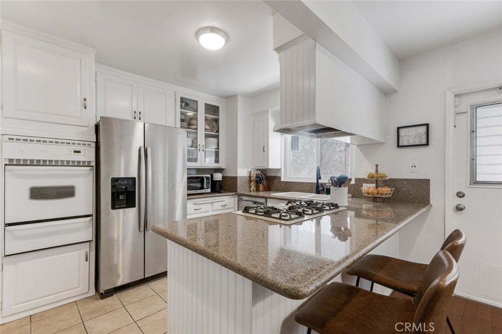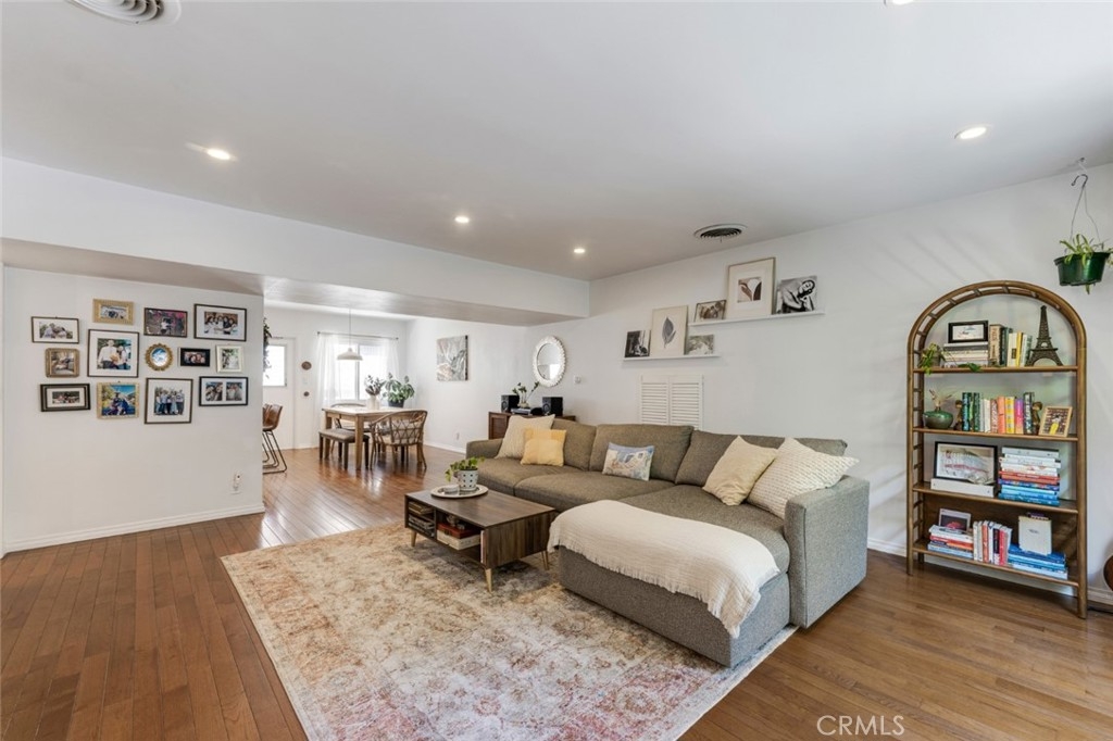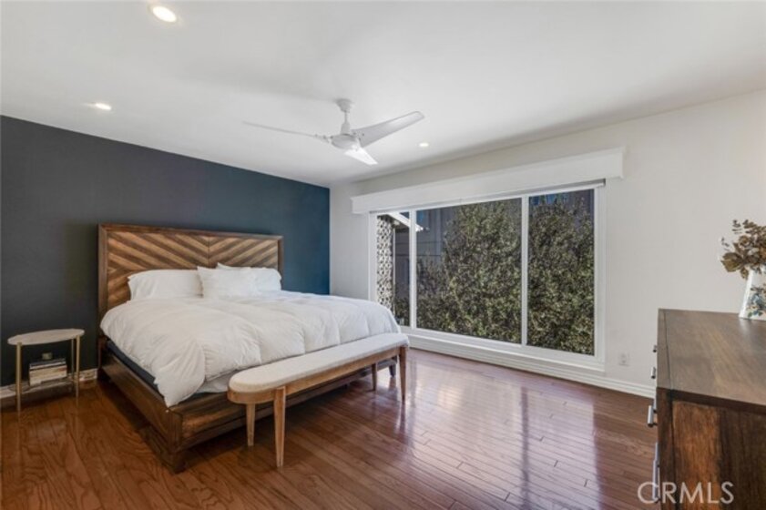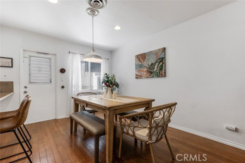 Beautifully maintained and thoughtfully updated 2 bed, 2 bath, 2-story townhome in a small, well-kept Sherman Oaks community, offers the ease of move-in ready condition and the everyday convenience of one of LA’s most loved neighborhoods. Gated entry opens to a private front courtyard with budding bougainvillea tree, perfect for morning coffee or evening entertaining. Enter into a bright, spacious, open floor plan living space with hardwood floors, recessed lighting, and abundant natural light throughout. The living room offers a view of the front courtyard through the large picture window; a generous storage space tucked away; and a unique alcove for display, kids play, pet area, or other creative use. Move seamlessly into the dining area and adjacent kitchen, fully equipped with granite counters, ample white cabinets, breakfast bar seating, and a convenient, in-unit laundry area. A remodeled downstairs ¾ bath features stylish hex-tile flooring, a pedestal sink, and a contemporary updated shower ideal for guests. Upstairs, two spacious bedrooms offer hardwood floors, recessed lighting, and contemporary ceiling fans. The bright primary bedroom boasts a dressing area and extra-large picture window while the second bedroom offers a closet with custom built-ins for effortless storage efficiency. They share a completely remodeled full bath with hex-tile floors, dual-sink vanity, and an oversized spa-style shower with multiple shower heads. The HVAC unit was recently replaced, and the property has one assigned parking space in a community carport with additional storage above. HOA dues also include water, trash, and sewer, plus a recently renovated community pool and appealing, drought-conscious landscaping in a communal front area. Situated moments from Ventura Blvd’s dining and shopping, neighborhood parks, and easy access for commuting throughout LA, this is a property not to be missed!