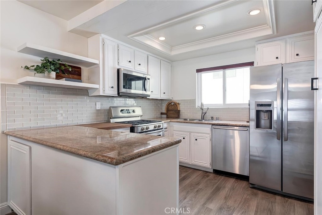 Huge price reduction! Great opportunity for this stylish Light-filled residence features an updated kitchen with high-end stainless-steel appliances, a spacious open concept, living and dining area with a cozy fireplace. Convenience is key with a powder room and laundry on the main level. Retreat to the upper level's two generously sized en-suite bedrooms with walk-in closets. The versatile ground floor bonus room features built in cabinetry and could be a perfect office, gym, or guest quarters. Direct access to a secured garage provides security and convenience for your two side-by-side parking spaces and storage units. Experience the best of Sherman Oaks living in this Prime south of the boulevard townhome. Residents can also enjoy the beautiful pool and open patio areas. HOA fees are only $435/month and include EQ insurance. With easy access to the 101 and 405 freeways, this is an ideal home for an easy commute to the westside and beyond.