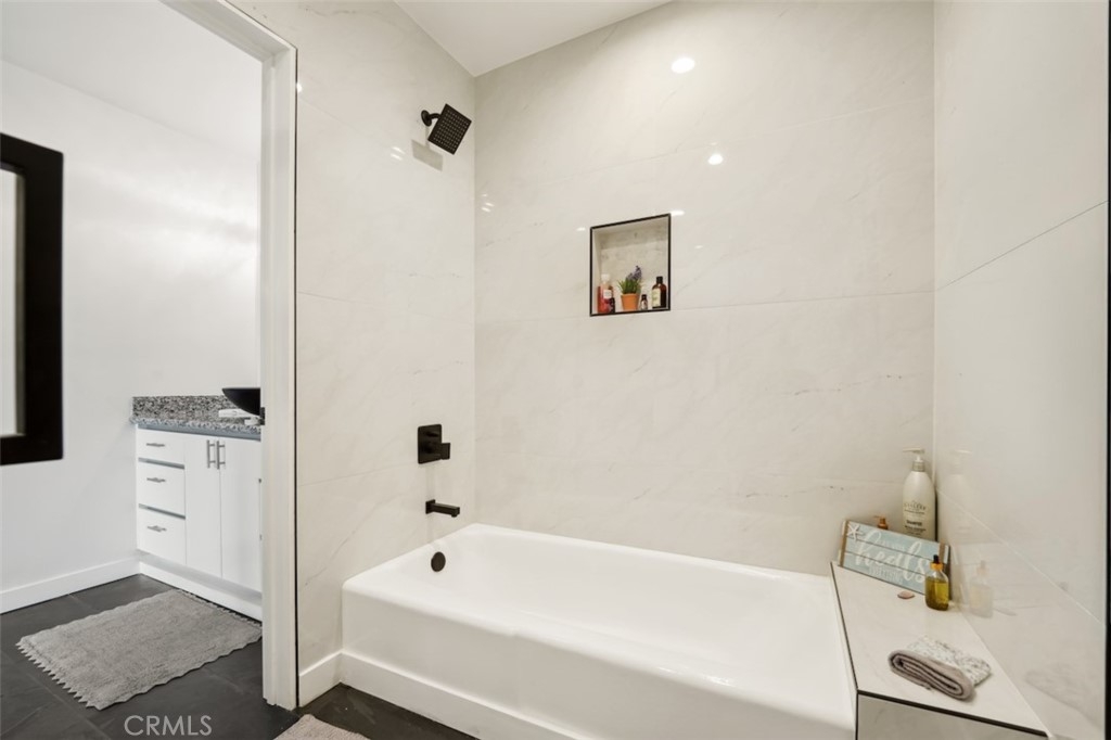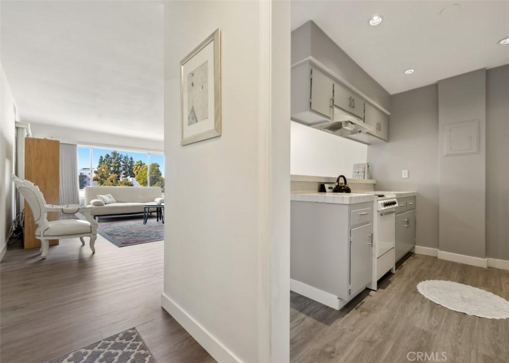 Stunning Top-Floor Condo in Sought-After Sherman Oaks Nestled in the heart of desirable Sherman Oaks, this beautifully remodeled top-floor condo offers the perfect blend of modern luxury and convenience. With hard flooring throughout, the open-concept design is both stylish and low-maintenance. The spacious kitchen features bar seating for casual dining, and opens up to a large living and dining area, creating an ideal space for entertaining. Step outside onto the expansive private balcony, accessible from both the master bedroom and living room, where you can enjoy breathtaking west-facing sunset views. The master suite is a serene retreat, offering direct access to the balcony and plenty of space to unwind. The updated bathroom is a luxurious sanctuary, complete with floor-to-ceiling large slab porcelain tiles, a relaxing bathtub, and a separate walk-in shower. This unit also includes in-unit washer and dryer hookups, as well as central A/C for year-round comfort. Located in a prime Sherman Oaks location, this condo is within walking distance to Trader Joe’s, Fashion Square Mall, and a wide variety of dining and shopping options. Whether you're enjoying a sunset from your balcony or exploring the vibrant neighborhood, you'll love the convenience of everything at your doorstep. The building itself offers exceptional amenities, including a sparkling pool, a fully-equipped gym, and a rec room for relaxing and socializing with neighbors. Don't miss out on this rare opportunity to live in a highly sought-after neighborhood with everything you need just steps away. Schedule your tour today!