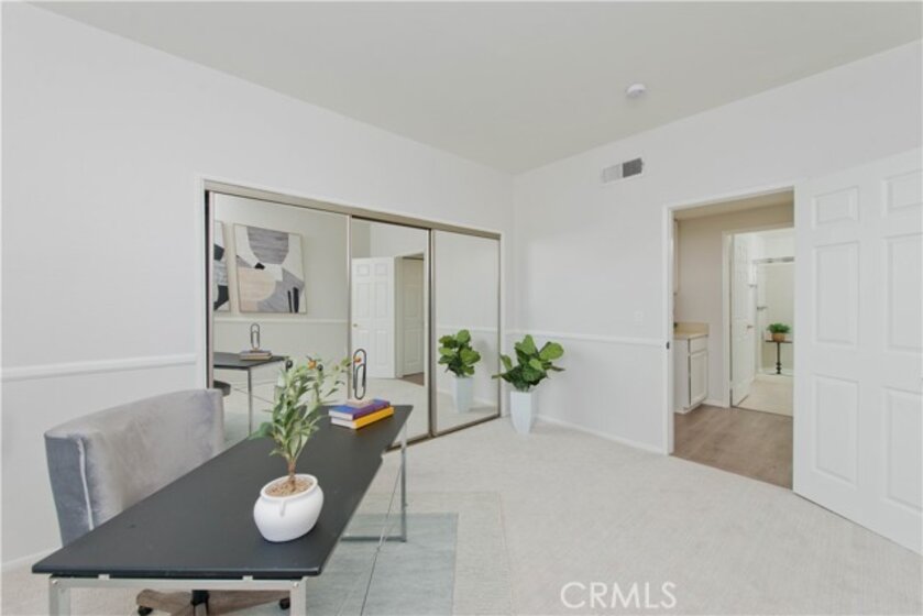 Look no further! This stunning residence in Chandler Park Village is ideally situated on a peaceful cul-de-sac street within the community’s most sought-after building. Bathed in natural light, this desirable corner unit offers beautiful views of mature trees and lush landscaping. Step inside to find spacious, open-concept living areas that include a formal dining space and an expansive living room anchored around its cozy fireplace, with direct access to a serene private balcony. The cook's kitchen features stainless steel appliances and a casual dining area — perfect for everyday living and entertaining. The well-designed layout includes two bedrooms located on opposite sides of the home, providing privacy and comfort. The expansive primary suite boasts a picturesque bay window, dressing area, enormous walk-in closet plus an additional wardrobe closet, and a spa-inspired bath with a makeup vanity and an oval soaking tub. Additional highlights include a full-size in-unit laundry including W&D, recently updated vinyl flooring, new carpet, new paint, designer updates, gated tandem parking, and private storage space. Enjoy the resort-style community amenities such as multiple pools and spas, a BBQ area, and fitness center. Located just moments from premier dining, shopping, entertainment, and major freeways — this is a rare opportunity to call Chandler Park Village home!