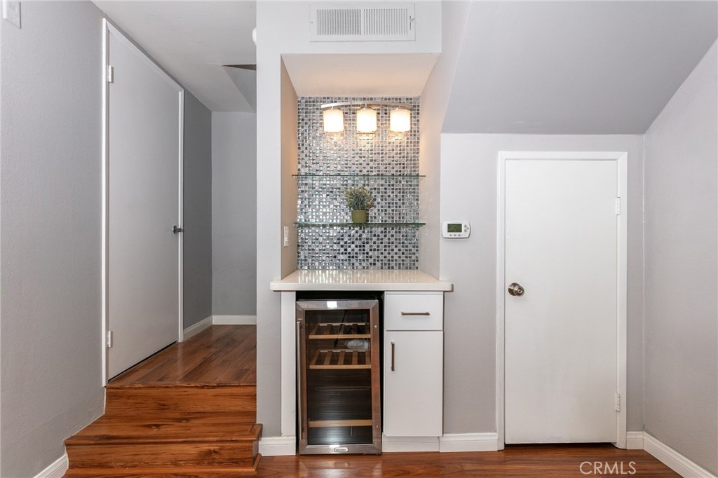 Spring is in the air with this centrally located 2 bedroom + 2.5 bathroom two-story condo in the heart of Sherman Oaks. Gated complex with total of only 28 units in the entire building. Low HOA dues covers water, hot water, trash and maintenance of common areas. 2 tandem parking spaces in secured garage PLUS 7 additional guest parking spaces. Located very close to the much desirable Blue Ribbon awarded Kester Avenue Elementary School, minutes away from the Sherman Oaks Galleria, grocery stores such as Trader Joes and Gelsons, Sherman Oaks Fashion Square, and only seconds away from the 101/405 freeways! This first floor corner unit features wood-style flooring throughout. The cozy living room with fireplace, bar and wine fridge is located on the main level next to a spacious dining area and updated kitchen with granite counter tops and stainless-steel appliances. A guest powder room is conveniently located just off the living room. On the second story are two primary suites with attached bathrooms appointed with modern vanities. Up one more level, you will find the laundry area with side-by-side washer and dryer. This unit also has a wonderful private rooftop patio that will allow you to enjoy beautiful sunsets all year long. Don't miss this one!