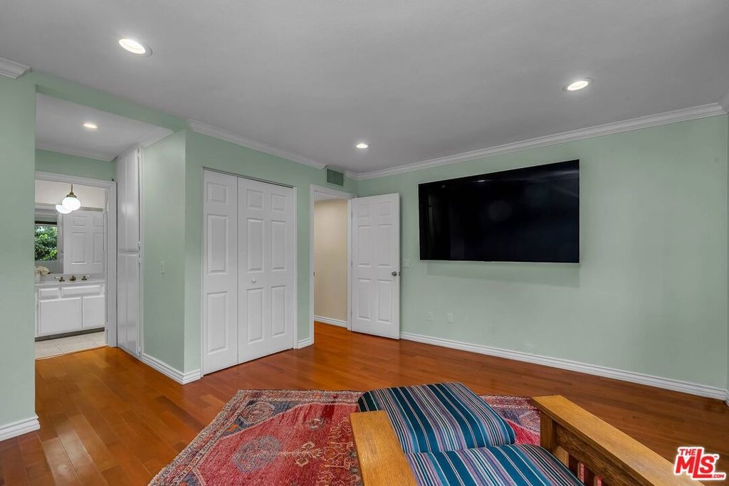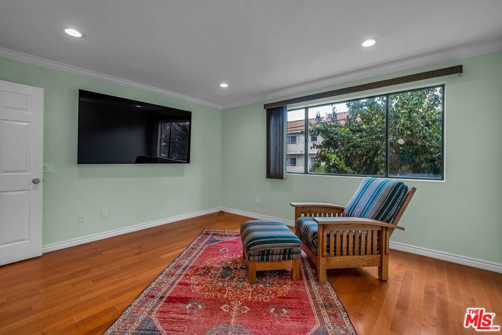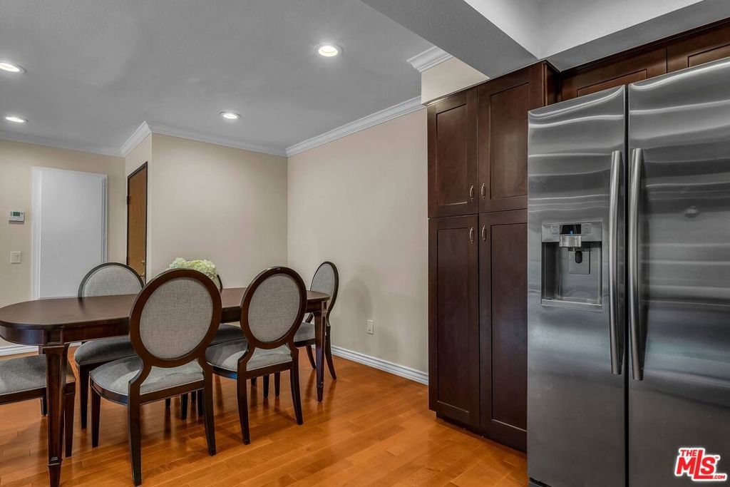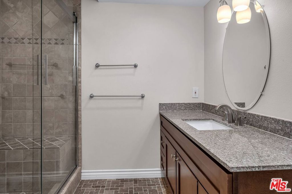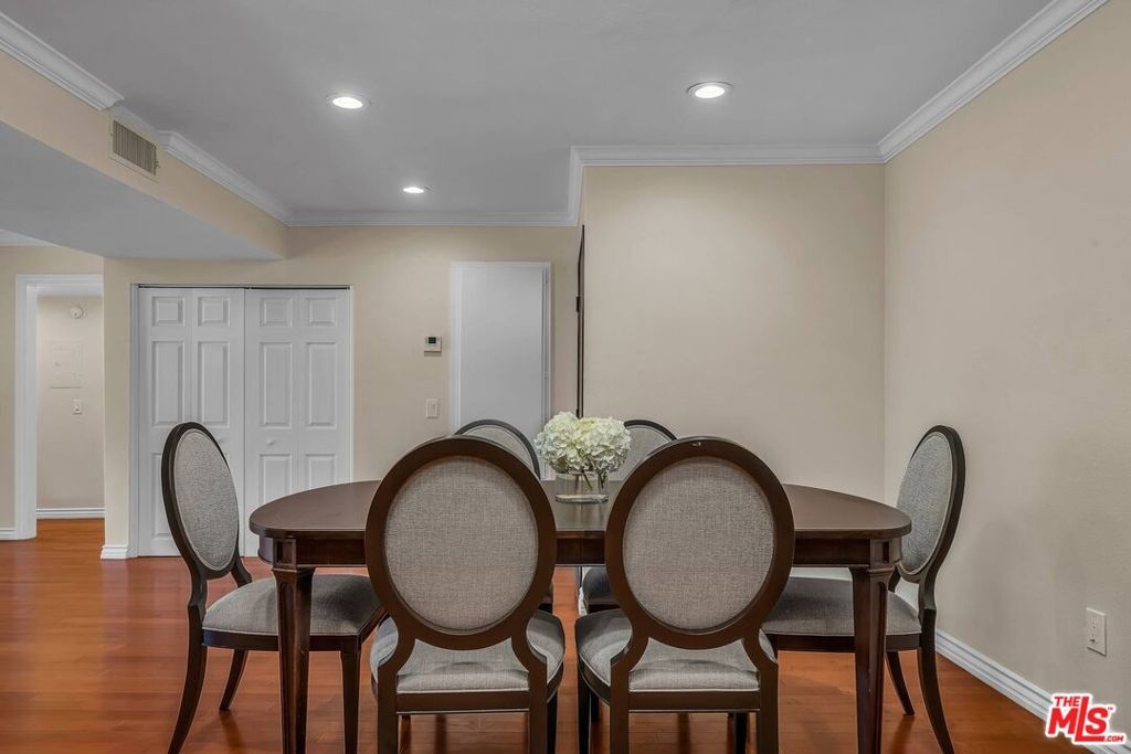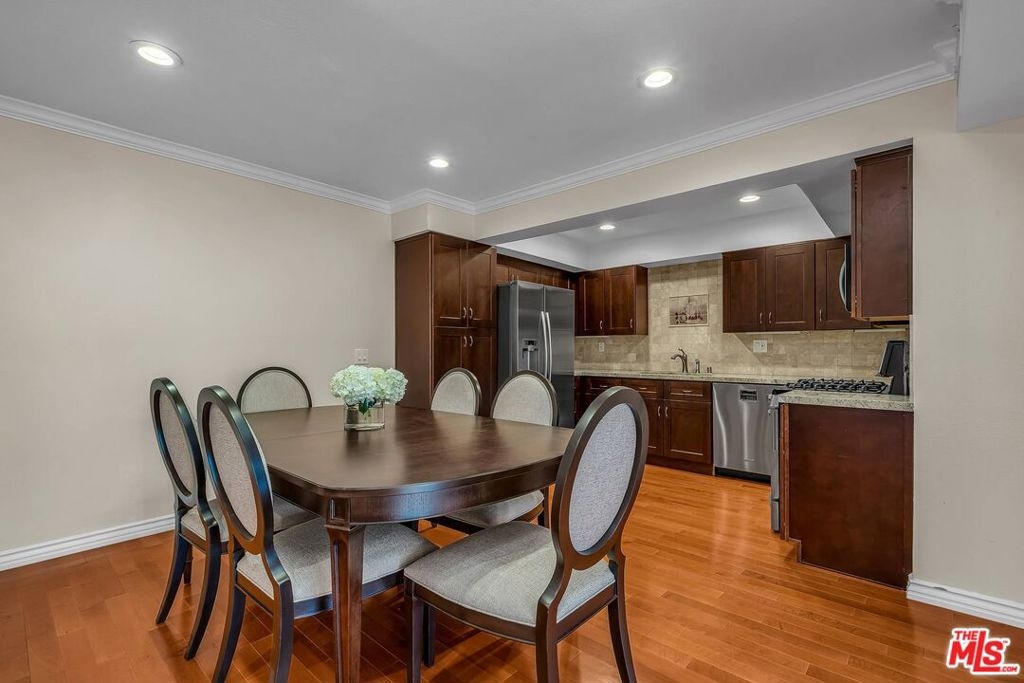 Meticulously maintained 1st floor unit in a desirable residential Sherman Oaks neighborhood. The unit boasts an open floor plan with kitchen, dining and living room with glass doors leading out to a large covered patio facing the side street. There are wood floors, smooth ceilings with recessed lighting and a fireplace. Kitchen with stainless steel appliances, beautiful stone backsplash, and granite counter tops. The particularly large primary bedroom suite has a remodeled bath with a oversized stone shower with bench. There is a dressing area that leads into a huge walk in closet.Separated 2nd bedroom is spacious and has its own bath. Inside laundry. Small well maintained building with 15 units and pool. Enjoy this comfortable and spacious unit close to shops and restaurants. Trust sale no court confirmation.