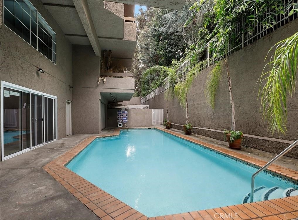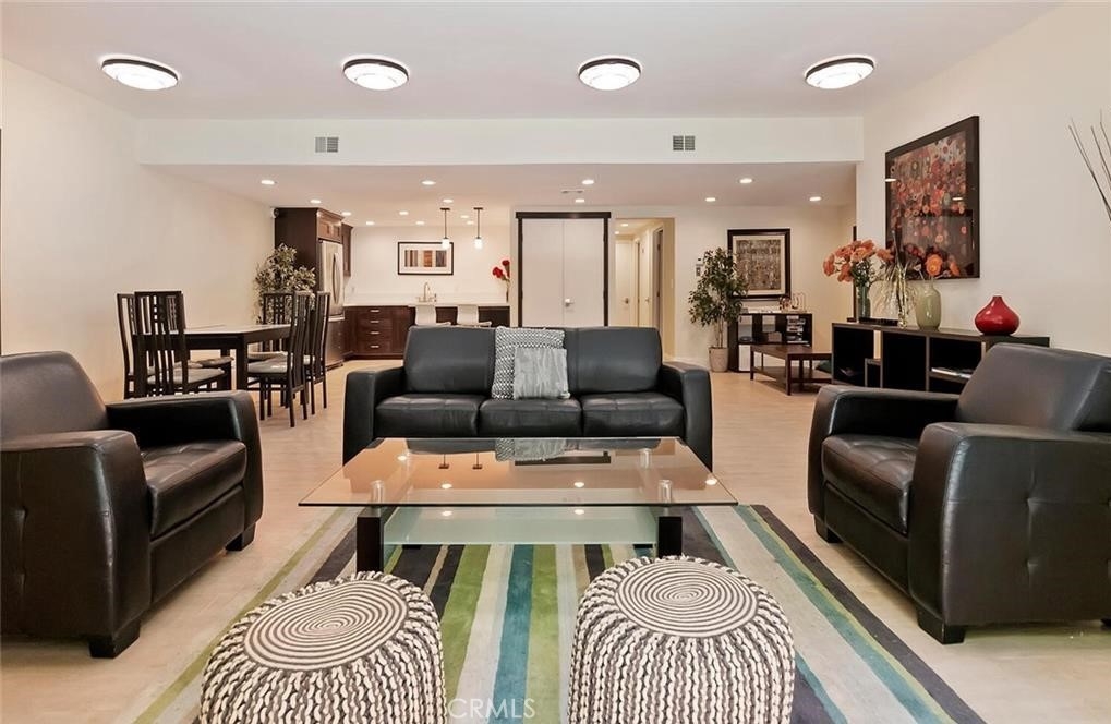 Top floor, end unit with huge rooftop patio. Well located 2 BR/2 BA condominium in one of the most desirable walking neighborhoods of Sherman Oaks in close proximity to restaurants, shopping, and entertainment along Ventura Boulevard, as well as nearby parks and accessible 101/405 freeways. Plenty of natural light fills this top floor corner unit featuring a spiral staircase leading to large and private rooftop patio. The unit includes a spacious living room w/gas fireplace and sliding door opening to balcony, dining room w/mirrored coffered ceiling, galley kitchen w/tile countertops and gas cooktop range, and a laundry room off of the kitchen w/washer & dryer hookups. The primary bedroom contains a walk-in closet, private balcony, and bathroom w/dual sinks, tiled floor, and large jetted bathtub and shower. Additional highlights include two subterranean tandem parking spaces close to westerly gated entrance, secured building entrance to attractive main lobby, recreation room, fully equipped exercise room, pool, and courtyard fountain. The HOA payment includes earthquake insurance, water, trash, pool, fully equipped gym, recreation room and landscape maintenance.