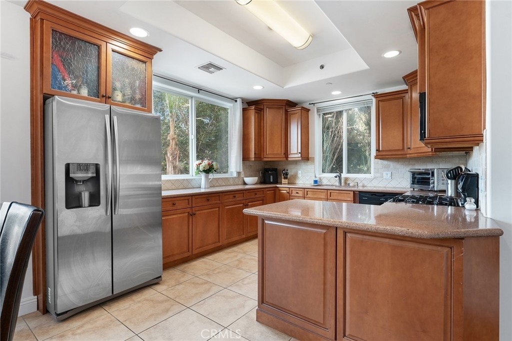 Incredible opportunity to own a 2005 constructed townhouse-style condo located in prime Sherman Oaks boasting 3 bedrooms + separate office, 2.5 baths, privately gated parking with 2-car attached garage with direct access, plus a very low HOA of only $365/month. This quiet building lined by the street’s beautiful namesake Magnolia trees has only 12 units and features a gated front entrance with newly installed Amazon Ring access controlled callbox for guests and packages for ultimate security and peace of mind. Step inside the largest model in the complex to find a bright open floor plan featuring high ceilings and large picture windows throughout. The living room features fireplace, sliding glass door that opens to a balcony deck, and wide plank wood flooring. The spacious dining room has access to a separate, larger balcony deck perfect for an outdoor BBQ. The kitchen opens directly to both living spaces and has expansive granite countertops ideal for food prep with separate breakfast bar seating, stainless fridge, 5-burner range with built-in overhead microwave, and dishwasher. The main level also has a powder bathroom for guests. Upstairs you will find three bedrooms including the primary, featuring large walk-in closet with built-ins, private balcony deck, and en-suite bathroom with dual sinks, granite counters, and oversized bathtub with shower. The second and third bedrooms each have built-in closets and one of the rooms has its own balcony deck. These two bedrooms share a hall bathroom with tub and shower. The laundry area is conveniently located on the same floor as the bedrooms and has great built-in storage. The lower level has 2-car finished garage with storage racks and direct access to the home’s mud room with storage, plus there is a separate bonus room ideal for office/gym/etc. There is also an upper rooftop deck with synthetic lawn great for pets which overlooks stunning mountain and city light vistas. Per seller: new HVAC system (2024), Level 2 EV charging outlet, and the HOA fees also cover water, sewer, and trash costs. Situated one mile from the Sherman Oaks Galleria and Ventura Boulevard shops and restaurants, quick access to the freeways, and zoned for Kester Elementary magnet school.