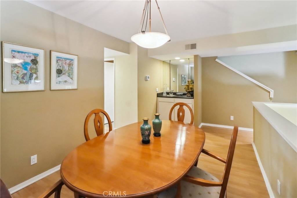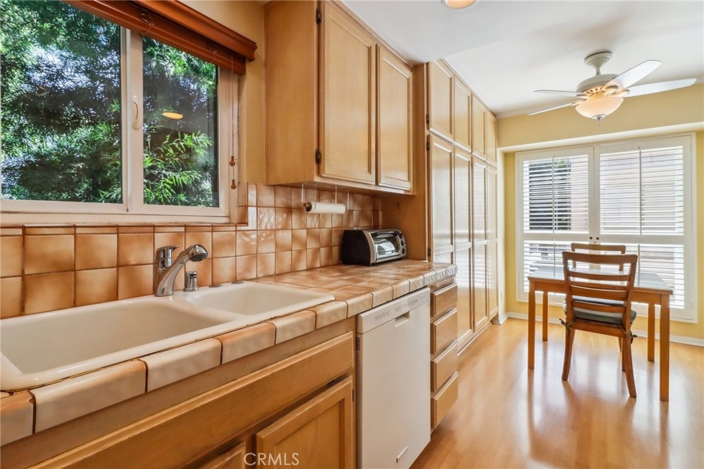 Light and bright end unit townhome in Oak Pointe. This spacious unit is located to the rear of the complex for maximum privacy. The large living room has cathedral ceilings and a lovely fireplace. Other features include a dining room with wet bar, eat-in kitchen and family room with built ins (easily converted to a 3rd bedroom). On the upper level, the primary bedroom suite includes ample closet space, dressing area and en-suite bath. There are 2 additional full baths, one on each level. The oversized, direct access 2 car garage has built in storage cabinets and laundry. Oak Pointe complex has lushly landscaped grounds and includes 3 pool and spa areas, lighted tennis and pickle ball courts. It is conveniently located close to dining, shopping and has easy access to freeways and the westside.