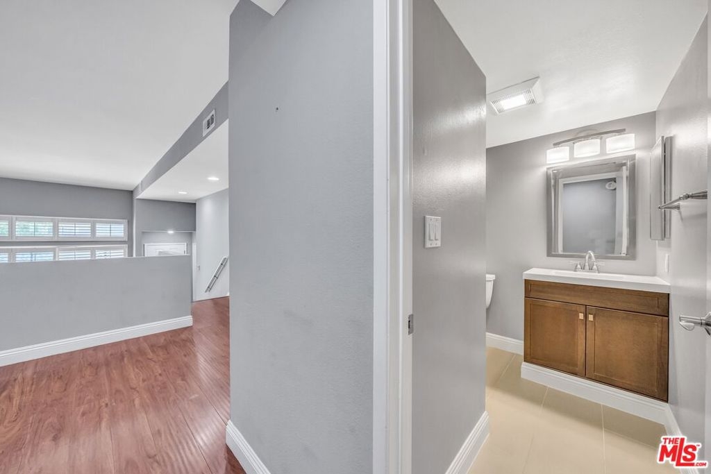 This townhouse is in one of the best locations in the Oak Pointe community. Located at the end of a beautifully landscaped walkway, the townhouse is in the middle and back of the complex where it's quieter and more private. Inside is a multi-level floor plan, with high ceilings in the living room open to the dining area and kitchen above. Kitchen has Bosch stainless steel appliances, granite counters, stone tile flooring and a cozy breakfast area. One bedroom and bathroom are conveniently located next to the kitchen and dining area while the rest of the bedrooms and bathrooms are on the top level. Master bedroom has it's own bathroom with dual sinks, spacious shower, walk-in closet and wall-length closet with mirrored doors. Attached, direct access two car garage has laundry hook ups and cabinets for storage. The resort-like community has swimming pools, spas, paddle and standard tennis courts, and basketball hoop. HOA dues include water, trash, landscape maintenance, cable and earthquake insurance. LAUSD resident elementary school is highly rated Kester Avenue Elementary!