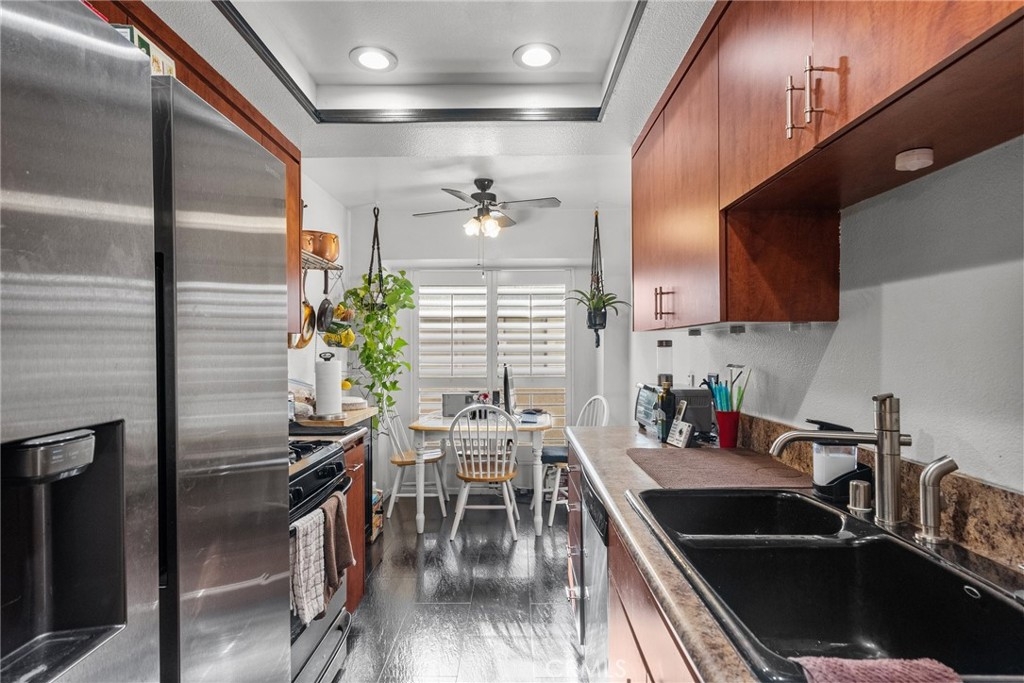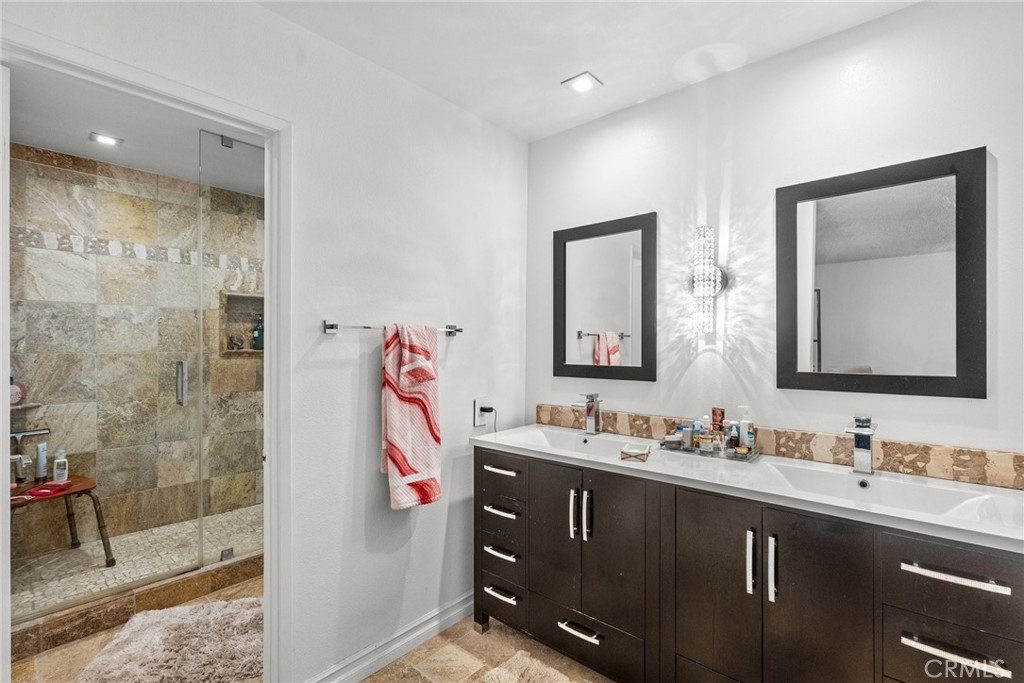Charming 3-bedroom, 3-bathroom townhome nestled in the highly sought-after Oak Pointe Community in Sherman Oaks. This split-level residence offers 1,562 square feet of thoughtfully designed living space. Upon entering, you're greeted by a spacious living room featuring soaring ceilings, a cozy fireplace, and an inviting private patio—perfect for relaxation or entertaining guests. A few steps up lead to a formal dining area and an eat-in kitchen, ideal for both casual meals and formal gatherings. Kitchen is upgraded with recessed LED lighting, granite counters and custom cabinetry. The third bedroom and bathroom on this level and can be used as a private office, offering flexibility to suit your lifestyle needs. The upper level boasts an oversized primary ensuite complete with dual closets, including a generous walk-in, dual sinks and giant wall to wall shower enclosure. An additional well-appointed bedroom and bathroom complete this floor, ensuring comfort for family or guests. This unit is situated in a tranquil interior location within the complex, surrounded by lush greens, enhancing its appeal. Residents of Oak Pointe enjoy resort-style amenities, including multiple swimming pools and hot tubs, tennis courts, sport courts, guest parking, and a private dog-friendly community park. The low HOA covers water, trash, 24-hour security patrol, and earthquake insurance, providing peace of mind and convenience. Additional features include a convenient direct-access 2 car garage, storage racks, workshop space and laundry nook. This townhome combines classic charm with modern amenities, making it a perfect choice for discerning buyers seeking comfort and convenience in the heart of Sherman Oaks. Excellent 101 and 405 FWY access, close to Ventura Blvd shops, malls, restaurants, theatres. Nearby the Sepulveda Basin Recreation Center with bike trails, community lake and gardens, and so much more!