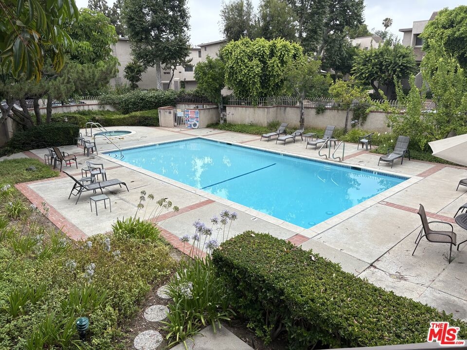 Welcome to this amenity-rich condominium, where convenient features and thoughtful updates come together to elevate everyday living. Inside, the highlight is truly the in-unit washer and dryer, offering privacy and ease that far surpasses the hassle of shared or community laundry facilities giving you the freedom to do laundry on your own schedule, in your own space. The home itself is filled with upgrades designed for both comfort and style: newer carpets, fresh paint, modern lighting, and sleek hardware throughout create a polished, move-in-ready feel. The spacious living area features a cozy gas fireplace and direct access to your private balcony, ideal for morning coffee or a quiet evening retreat, with bonus storage included. The kitchen and bathrooms are both updated with resurfaced cabinetry, granite countertops, and contemporary stainless steel appliances, paired with upgraded enclosures that bring both function and elegance to the home. The primary bedroom offers a peaceful retreat with a walk-in closet and tranquil views of mature pine trees. Adding extra convenience are features like a Nest thermostat, upgraded garbage disposal, SimpliSafe security system, and assigned garage storage. Two tandem parking spaces, basic cable service (covered by your HOA), and the advantage of only one shared wall further enhance everyday ease.Beyond your front door, you'll enjoy a wealth of community amenities designed for recreation and relaxation. Multiple pools and spas let you unwind at your leisure, while the resurfaced pickleball court, upgraded tennis courts, and basketball court provide endless opportunities for play and fitness. Beautifully landscaped grounds provide refreshing green spaces perfect for casual walks, complete with dog waste stations for pet owners. HOA dues also include earthquake insurance for added peace of mind.Situated in the highly sought-after Kester Elementary School area, this condominium is part of a well-maintained community with recent termite work, a newer roof (7-8 years), and a new HVAC system installed in 2022. This home isn't just well-updated, it's nestled in a vibrant environment that prioritizes comfort, safety, and access to rich amenities at every turn.
