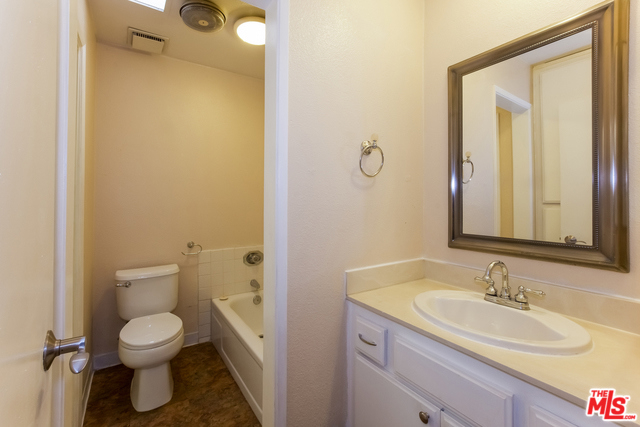 This Sherman Oaks one-story offers a fireplace, granite kitchen countertops, a master bath separate tub and shower with dual sinks and cultured marble countertop, and a covered balcony.