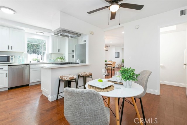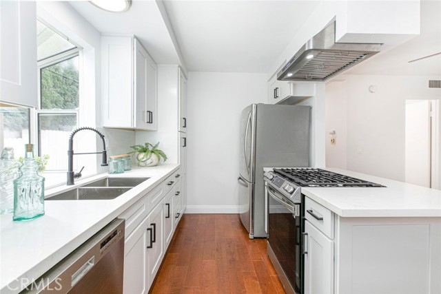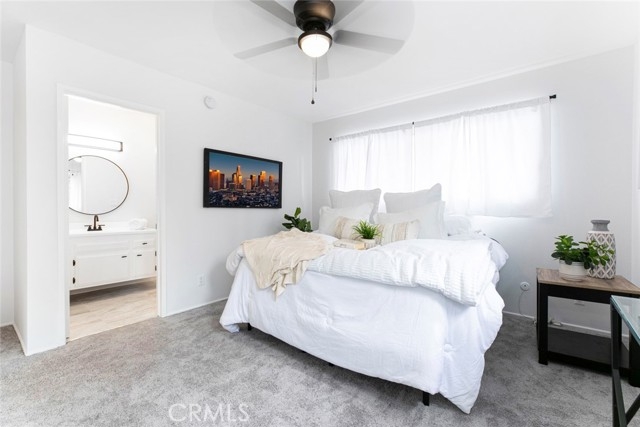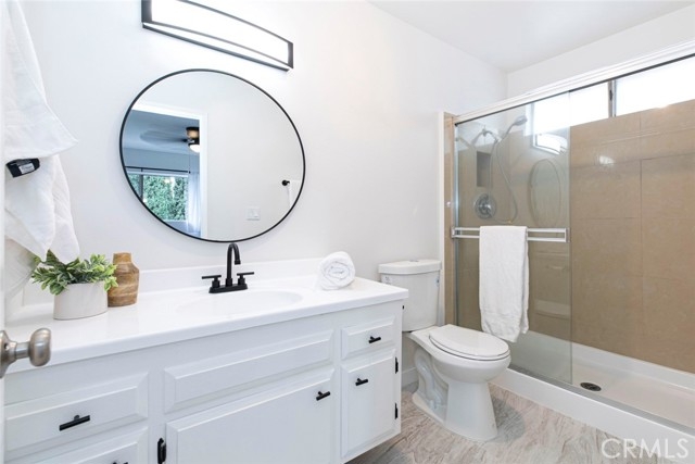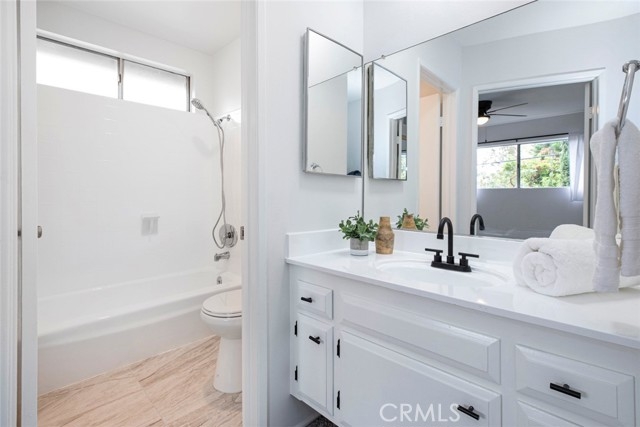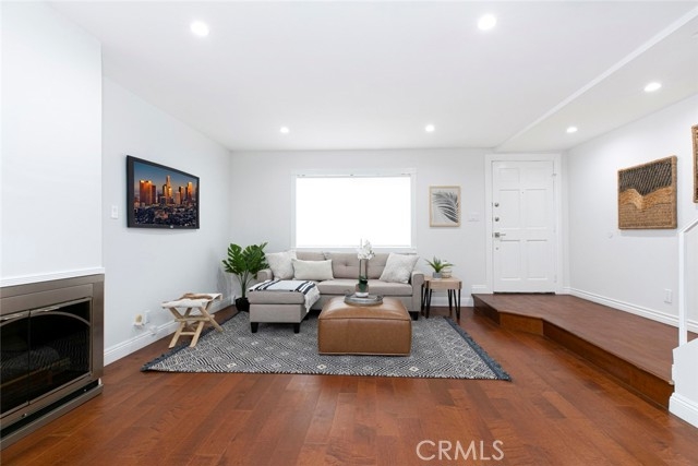 WOW** This end unit has a PRIVATE YARD!** Gated complex of only 8 units. Open the sliding door off the family room and enjoy the secluded outdoors! **FULLY REMODELED** 3 bed 2.5 bath brings fully updated kitchen, breakfast bar, new stove/hood, new cabinets w/ quartz countertops, eat-in kitchen option. Updated ½ bath off kitchen. Open family room w/ fireplace. New carpeting, blinds, and curtains. Bedrooms have treetop views! Master has 2 closets and updated private bath. Other 2 bedrooms have nice closet space. Additional updated full bath. Enclosed tandem garage. A+ location with easy access to freeways and shopping!