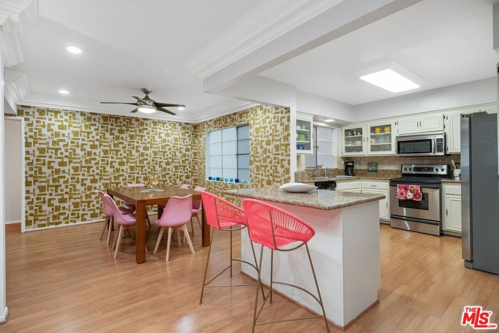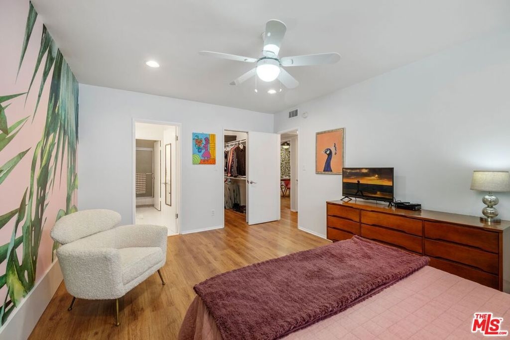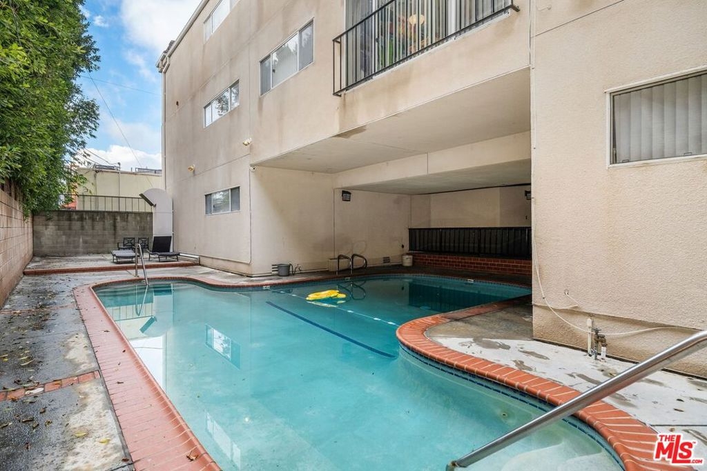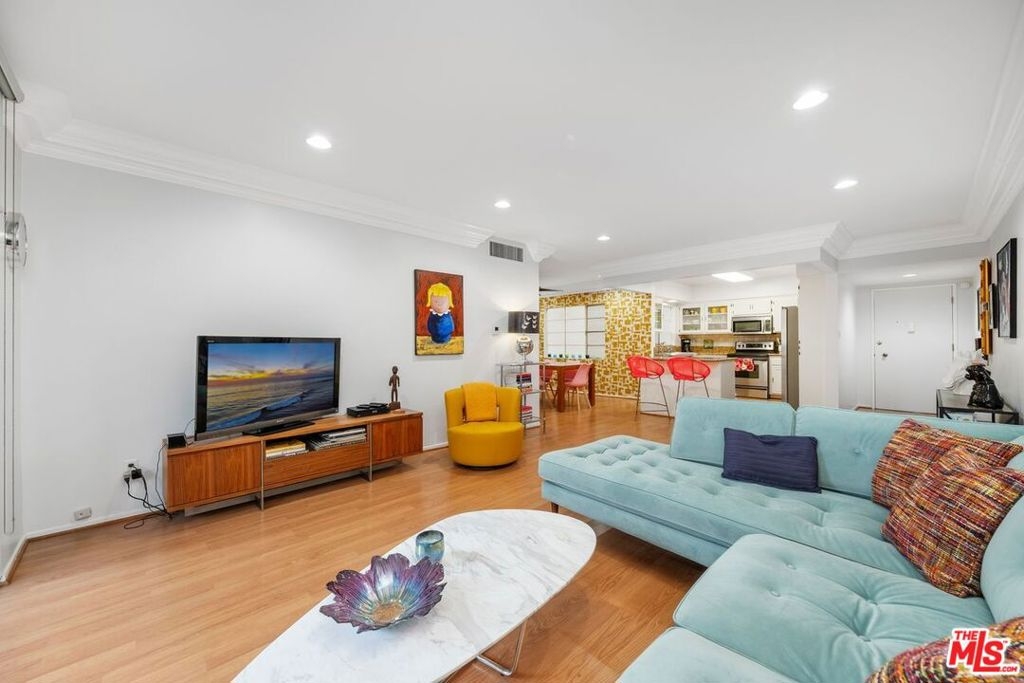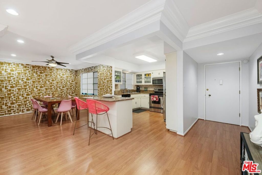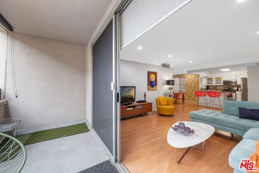 Chic, mid-century vibe. Terrific open floor plan a hair under 1400 sq. ft. in the unit, kitchen opens to the living and dining areas. Two bedroom/2 bathroom, private balcony, light, bright and walls for artwork. Updated building, pool, great closet space and did you take a look at the square footage. This is a great value. Great location easy freeway access.