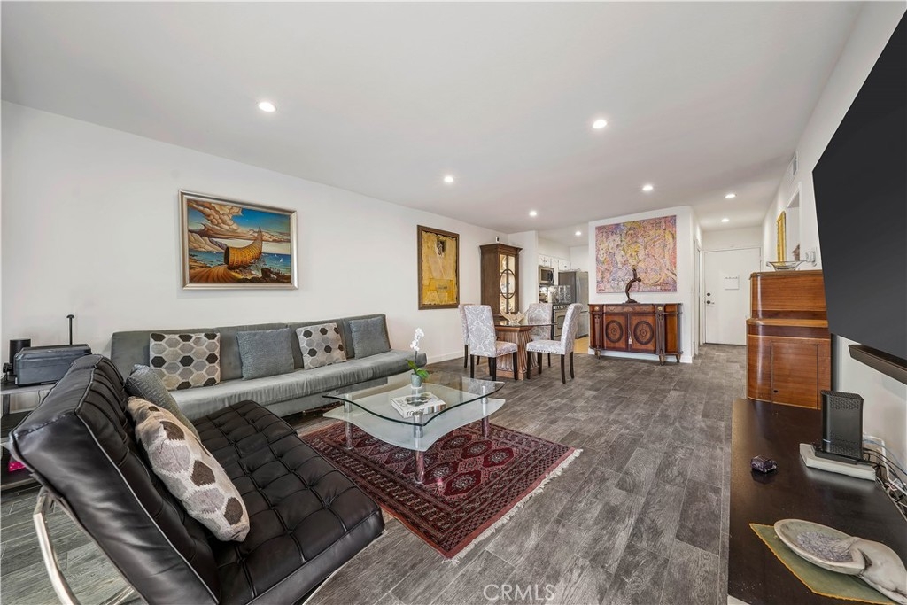 Beautifully remodeled single-story condo in a great pocket of Sherman Oaks. Long inviting entryway leads to this two bedroom and two bathroom home with an open floor plan. Light and bright living room with wood-like porcelain tile floors, recessed lights, quaint dining area and sliding glass door that overlooks a private balcony. Adjacent to the dining area is a galley kitchen with Quartz countertops, mosaic backsplash, stainless steel appliances, under cabinet lighting and ample storage space. Spacious master bedroom with its own private balcony and remodeled master bathroom with Quartz countertops, tile floors and an oversized walk-in shower stall with an overhead shower. Sun filled second bedroom is great for guests or an office and is located across from remodeled guest bathroom. Guest bathroom with Quartz countertops, vessel sink, hexagon tiled walls and shower stall. Additional features include porcelain tile floors throughout, two large closets in entryway (one with washer/dryer hook-ups) and two tandem parking spaces. Citywood HOA is a well-maintained complex located on a cul-de-sac street and features a sparkling pool, controlled access, community laundry on each floor and guest parking spots. Conveniently located with easy access to freeways and close to Lake Balboa Park, several great restaurants, shops, farmer's market, bike paths and more.
