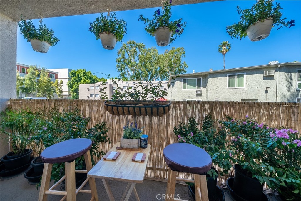 SPACIOUS 1 bedroom/1 bathroom condominium with a FABULOUS floor plan. This stylish UPDATED unit is in gated Citywood Complex in the heart of Sherman Oaks. Near MOVE IN CONDITION! The entertainers style living room has hardwood style flooring and has room for a modular couch or even large furniture plus many other options. Also includes flat ceilings with recessed lights, central air/heat and newer thermostat. The wood framed French Doors in living room lead to the sellers green thumb balcony that has neighborhood, trees and partial mountain VIEWS. The large BRIGHT kitchen features stainless steel refrigerator and appliances, glass backsplash, dishwasher plus lots of cabinets and very useful walk in pantry. The full sized dining room and breakfast bar offer a choice where to eat. The beautiful bathroom has dual sinks with TRAVERTINE BACK-splash on vanity, and a gorgeous MARBLE enclosed shower/bath tub. OVERSIZED closet in entryway might be storage, professional business office or etc. NO STAIRS in unit. 2 Elevators from garage. 1 car assigned gated parking. Cul de sac street. Unit is located on 1st floor but floor is elevated and similar to many other 2nd level condos. HOA Includes sparkling pool, updated front/rear facades, exterior building painted, earthquake insurance and WATER. Near 405/101 freeways and Westside, yet very QUIET. EASY ACCESS. Washer/Dryer on each floor. Private w/d with HOA approval. Call agent for appointment.