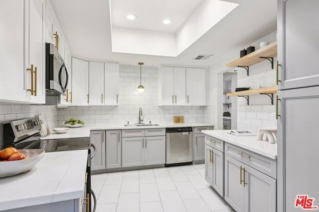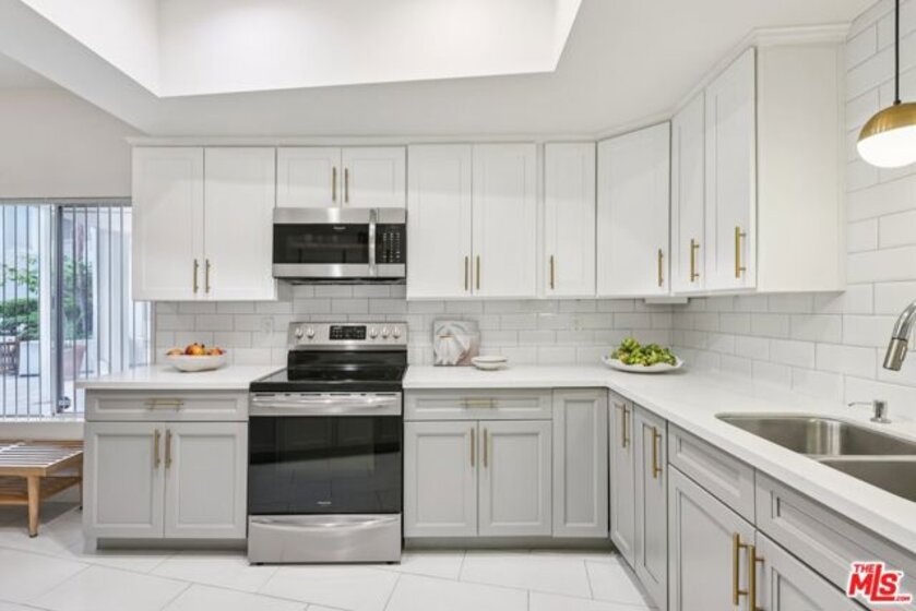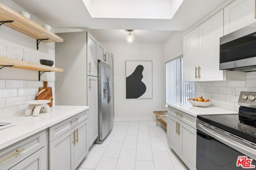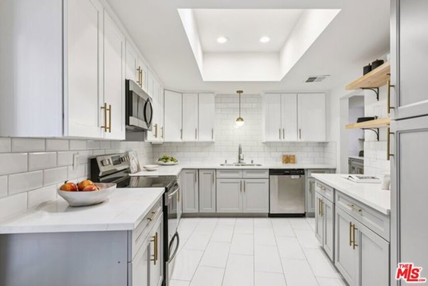 Experience the best of South of the BLVD Sherman Oaks living in this beautifully remodeled, contemporary 2-bedroom, 2-bath condo, ideally situated on a charming tree-lined street. Modern style meets timeless design in this light-filled home featuring an open floor plan with a spacious living and dining area, accented by a decorative fireplace and elegant finishes throughout. The new chef's eat-in kitchen is a show stopper, complete with beautiful countertops, beveled subway tile backsplash, sleek porcelain tile floors, a cozy breakfast nook, and new stainless-steel appliances. The primary suite offers a serene retreat with ample closets and a fully remodeled en-suite bathroom boasting a custom walk-in shower with glass doors, dual vanities, and stylish tile floors. The second bedroom and updated guest bath provide flexibility for guests, a home office, or creative space. Perfectly located just moments from premier shopping, dining, and entertainment along Ventura Blvd., this home blends modern luxury with everyday convenience. Welcome home to the heart of Sherman Oaks, where style, comfort, and location meet.
