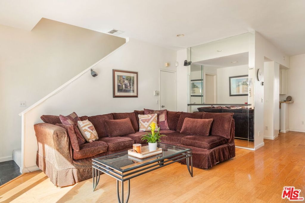 Welcome to this charming 2-bedroom, 2.5-bath townhouse-style condo in the heart of Sherman Oaks, ideally located just steps from Ventura Boulevard in a prime location. Nestled in one of the area's most desirable pockets, this home offers the perfect blend of style, comfort, and convenience. The building was recently refreshed with a sleek exterior repaint and a brand-new roof, enhancing its curb appeal and long-term value. This move-in ready, natural light-filled corner unit features wood floors throughout the first floor and brand-new carpet upstairs. The desirable open-concept floor plan seamlessly connects the living, dining, and kitchen areas, creating an inviting space ideal for both everyday living and effortless entertaining. The spacious living room is highlighted by a cozy gas fireplace, adding warmth, character, and a welcoming focal point. The thoughtfully designed two-story layout offers enhanced privacy, while both generously sized bedrooms feature en-suite bathrooms and ample closet space. Step outside to your large, completely private patio perfect for indoor-outdoor living, morning coffee or al fresco dining. Residents enjoy controlled access, a conference room, additional storage lockers, and two side-by-side assigned parking spaces in a gated subterranean garage. The well-maintained community sits on a picturesque tree-lined street and features a sparkling pool for sunny Southern California days. Just moments from trendy restaurants, boutique shopping, coffee shops, and vibrant entertainment along Ventura Boulevard, this exceptional property offers the perfect combination of location, lifestyle, and comfort in one of Sherman Oaks' most sought-after neighborhoods.