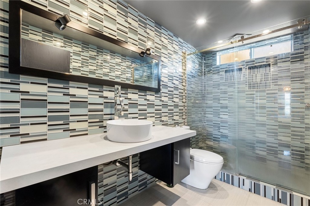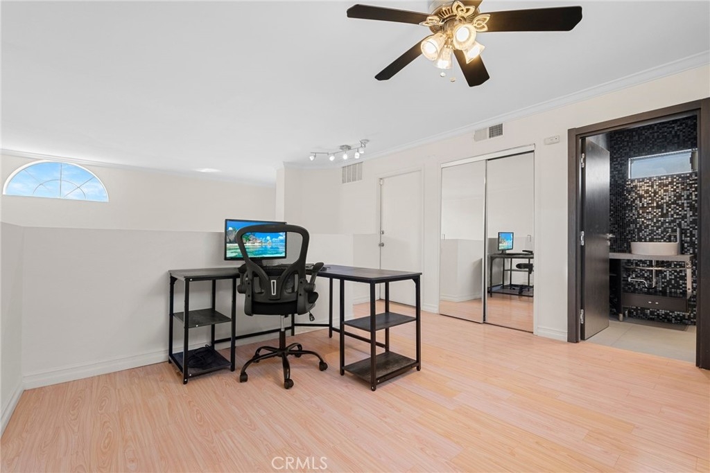 Elegant top level condo with a private rooftop deck located in the heart of prime Sherman Oaks! Upon entering you are greeted by soaring ceilings and an abundance of natural light providing the living area a grand ambiance. White tile flooring and large glass sliding doors allow for an open and fresh feel throughout the main living spaces. Offering 2 bedrooms, 2.5 bathrooms, and a spacious loft (that can be a 3rd bedroom), this 1,673 sqft. home is filled with sophisticated details and character. From the glass tile walls in the bathrooms, the custom built in closets and the unique kitchen this home is truly one of a kind. The striking glass bottom spiral staircase leads to the spacious loft complete with a half bathroom, perfect for a home office or additional living space. Enjoy the benefits of a brand new HVAC system recently installed! While upstairs, step outside to your very own secluded roof top deck - perfect for warm nights and large enough for entertaining. Another perk is this property's proximity to the LA Riverfront Green Way, Ventura Boulevard, the 101 Fwy, shopping, restaurants, night life and more. Don't miss the opportunity to make this amazing property your new home.