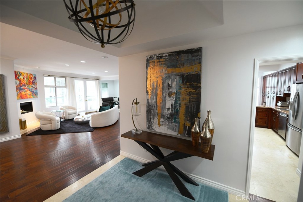 Magnificent entertainers delight in the heart of Sherman Oaks. This designer master piece is truly one of a kind with extensive designer upgrades, accented with high ceilings, crown moldings, recess lighting , custom built fire place, custom built doors, and much more. This gorgeous light and bright 2200 sqft home offers open floor plan with formal living room, dining room , a den and a great patio over looking mature trees. The designer fully remodeled kitchen offers costume built cabinets, stainless steel appliances, and eating area. The oversized master bedroom offers elegance and privacy with its own luxury remodeled bathroom with dual sinks, step in shower and a vanity area. The walk-in closet is an added bonus. Great well maintained building. It offers pool, spa, sauna and a gym. Earthquake insurance is included. Great location near Restaurants, and shops. Easy westside access.