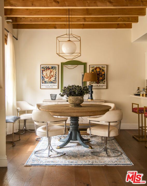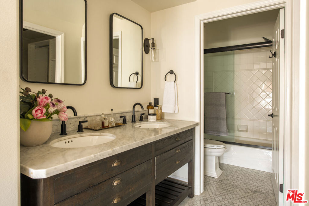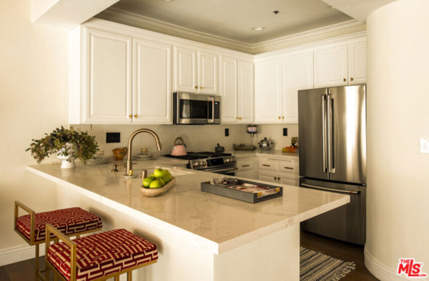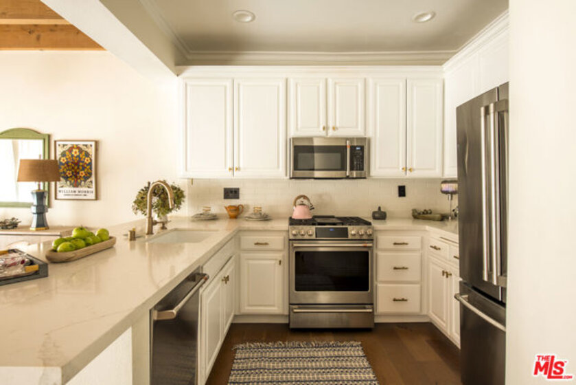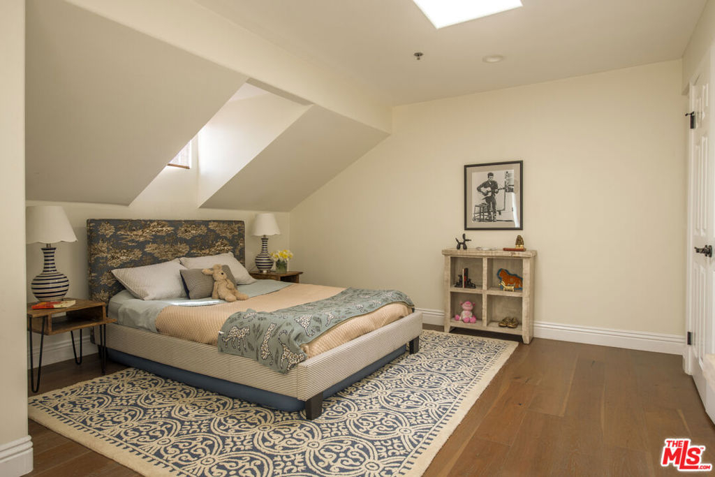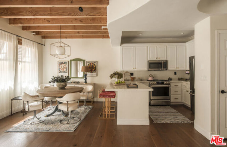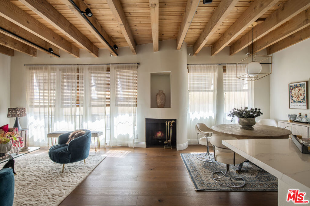 Townhouse-style Mediterranean residence offering three levels of beautifully crafted living, crowned by a private rooftop patio with sweeping mountain views. Though technically a condo, the layout and design live like a true townhouse, delivering both privacy and architectural presence.A dramatic entry opens to a light-filled living room featuring a fireplace, rich hardwood floors, and striking wood-beamed ceilings. An elegant curved staircase anchors the space, leading seamlessly into the open-concept dining area and kitchen, complete with breakfast counter and stainless steel appliances. A powder room finishes the main level.Upstairs, a circular landing leads to two secondary bedrooms with coved ceilings and a full bath, along with a spacious primary suite offering a walk-in closet and en-suite bath.The third level presents a versatile family room or potential third bedroom, with a dedicated laundry area and ample storage. This level opens directly to the rooftop patioan ideal setting for entertaining or unwinding against a backdrop of mountain vistas.Ideally located just off Ventura Boulevard, moments from coffee shops, restaurants, and retail. Additional amenities include a well-managed HOA with earthquake insurance and two-car parking in a secure subterranean garage.