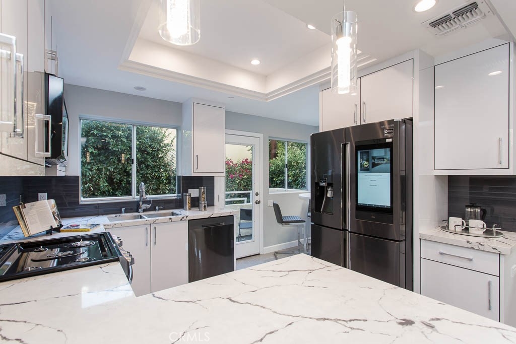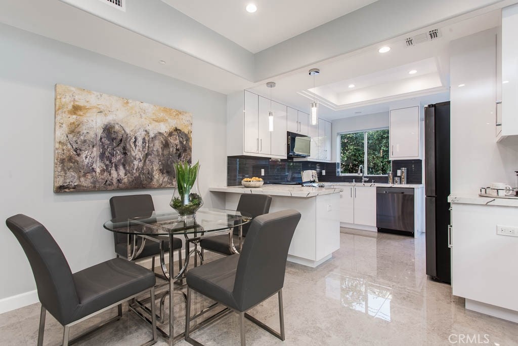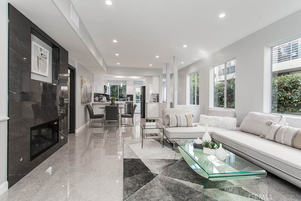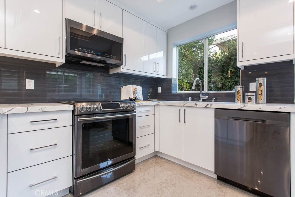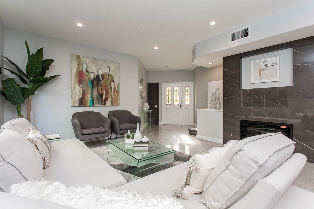 A fully remodeled, South of the Ventura, Sherman Oaks Townhouse. This luxurious unit was completely remodeled. First floor, features high ceilings, brand new kitchen with a breakfast nuke, hardwood flooring throughout, new stainless steal appliances, fire place, tons of natural light, and a beautifully remodeled bathroom. The entire second floor is dedicated to the Master suit, high ceilings, walk-in closets, oversized completely remodeled master bathroom, fire place and a balcony over looking the greens. The third floor has 2 additional bedrooms and a large remodeled bathroom. There are only 3 units in the complex