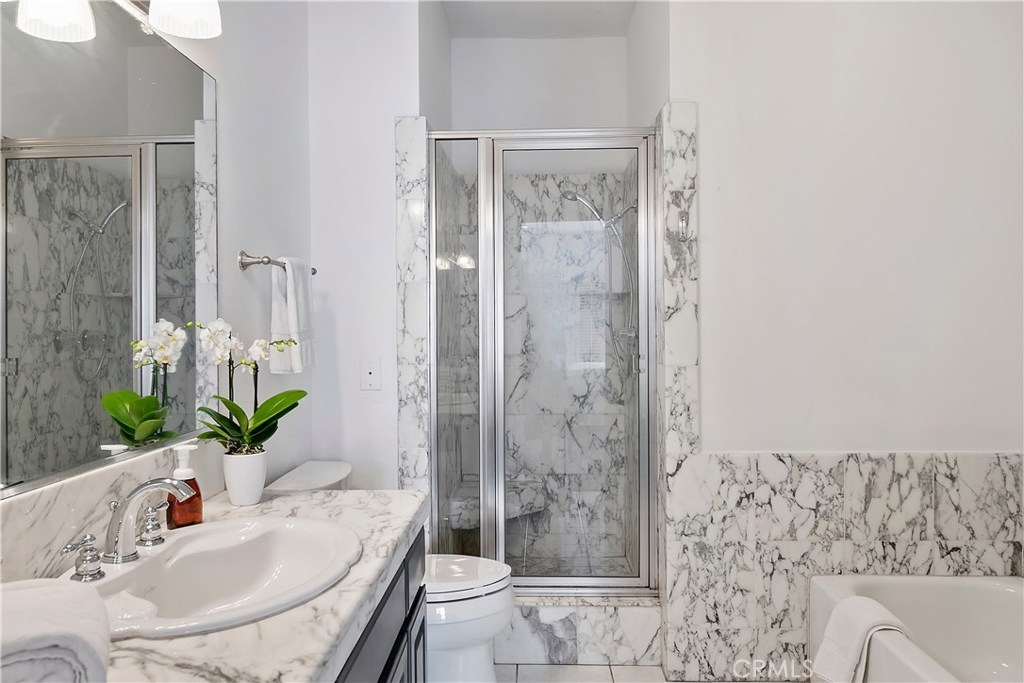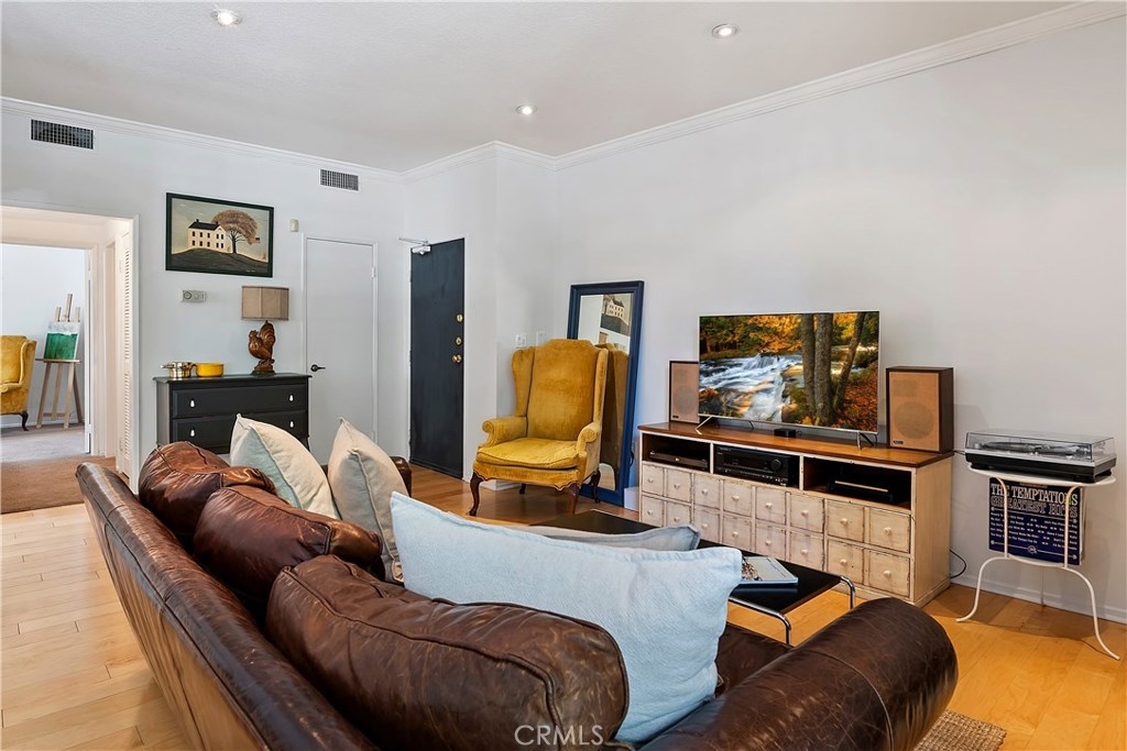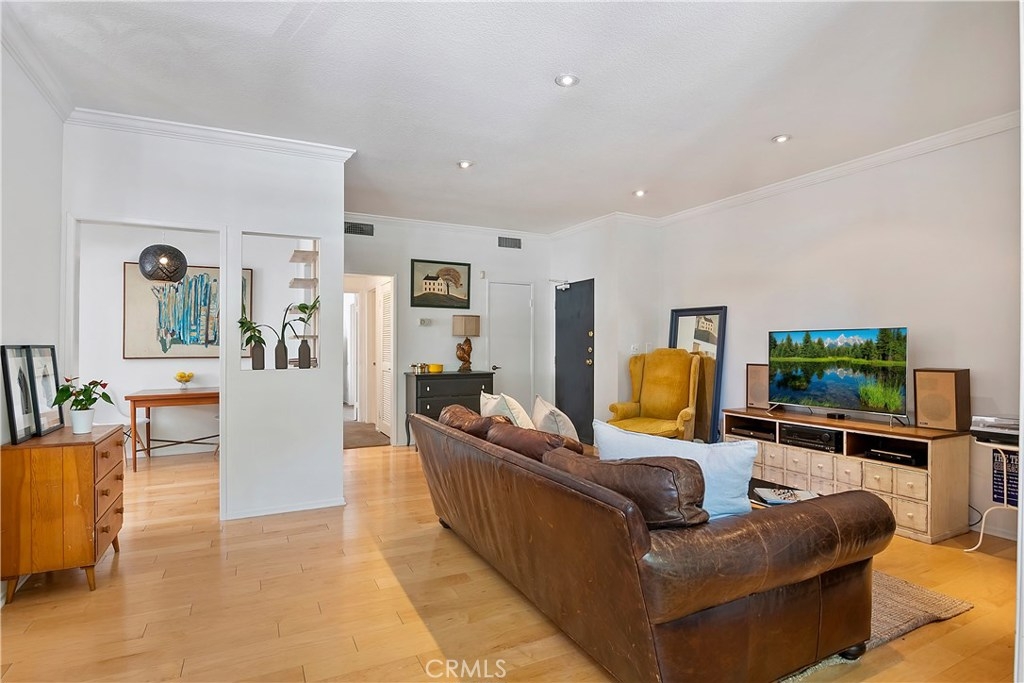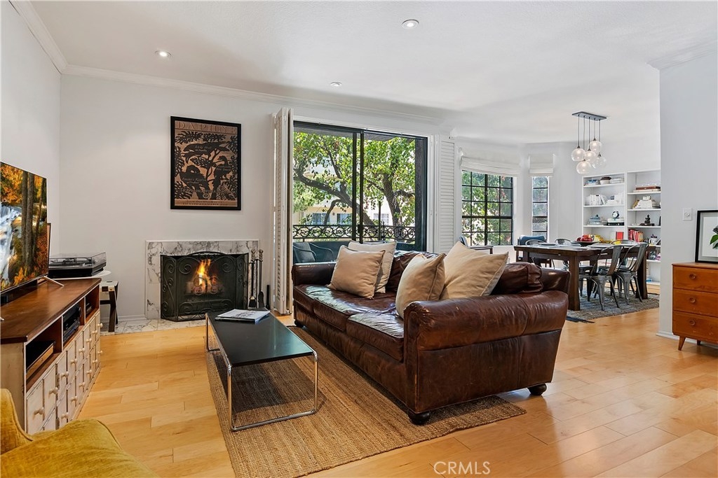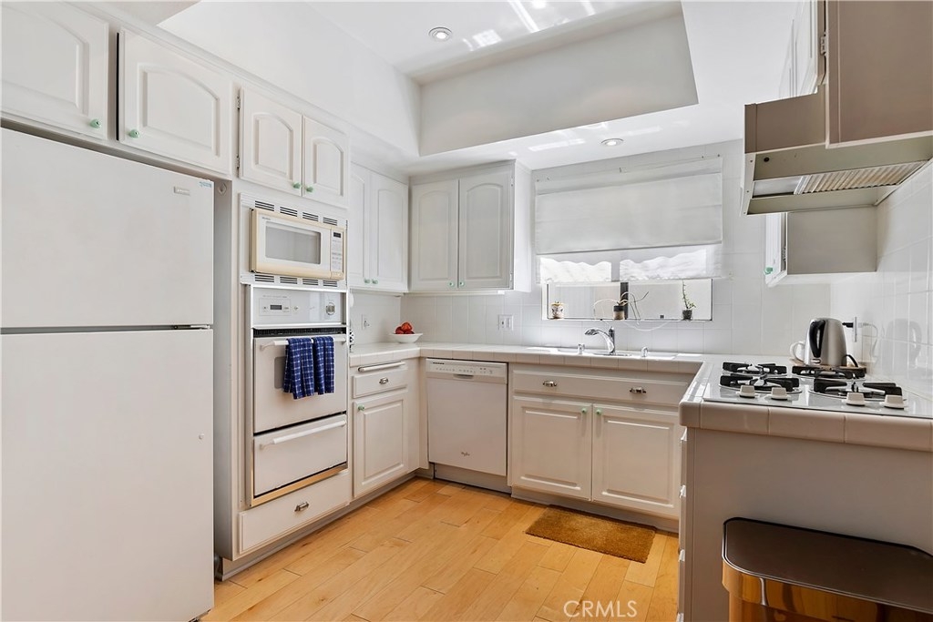 OVERSIZED, light, bright, front facing unit sharing only one common wall in the heart of Sherman Oaks! Spacious open floor plan features a living room/dining room with engineered hardwood floors, recessed lighting, a gas fireplace and abundant windows overlooking a balcony & trees. A sizable cooks kitchen with tile counters, gas cooktop, oven & microwave AND cozy breakfast area. The very large master suite features 2 closets -one being a "walk in closet", a large master bath with separate tub, stall shower and linen closets. There is an additional 1/2 bath as well. Other features include stackable laundry IN the unit, 2 tandem parking spaces with a storage shed in the garage. The building amenities include a swimming pool, spa, sauna, gym/rec. room & earthquake insurance. This charming single level unit situated in a well maintained building, located on a cul-de-sac is not to be missed!!!