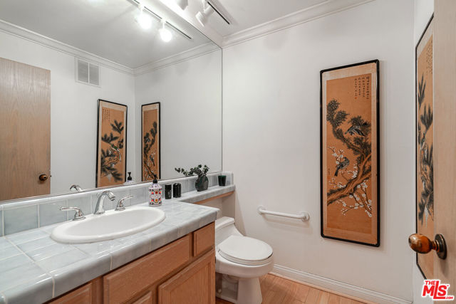 Maybe the largest 1 bedroom you you've ever seen, so large it has 2 bathrooms. Landing at an expansive 1780 sf this high ceiling and light filled condo feels more like a townhome, with 2 separate outdoor decks. Through the front doors you have a large formal entry way that frames the floor to ceiling shuttered windows with an open concept living and dining areas including custom built ins. Nice open kitchen with sliding doors to access its 2nd patio. Large bedroom with sizable walk in closet and primary bathroom with shower and spa tub. Washer + Dryer in unit. Monthly HOA includes earthquake insurance, community offers a pool and spa, 2 parking spaces included. Located in a quiet tree lined cul-de-sac with close access to shops, restaurants and freeway access.