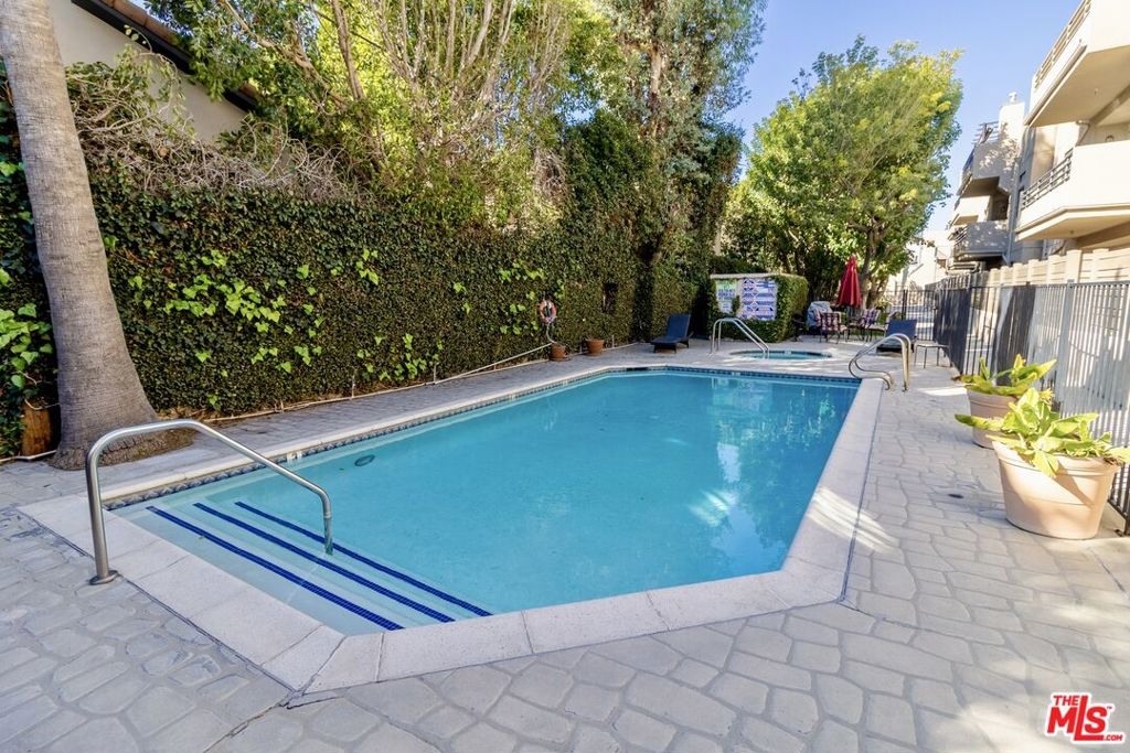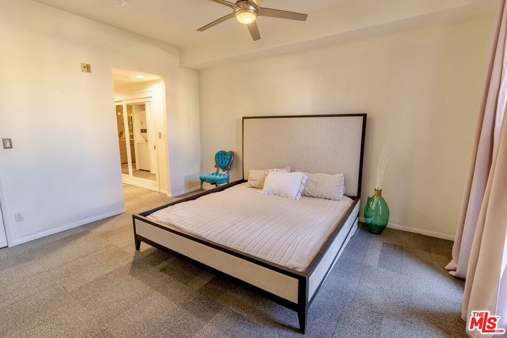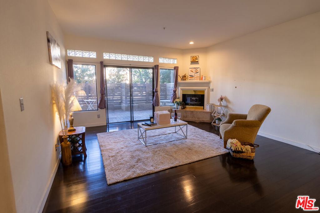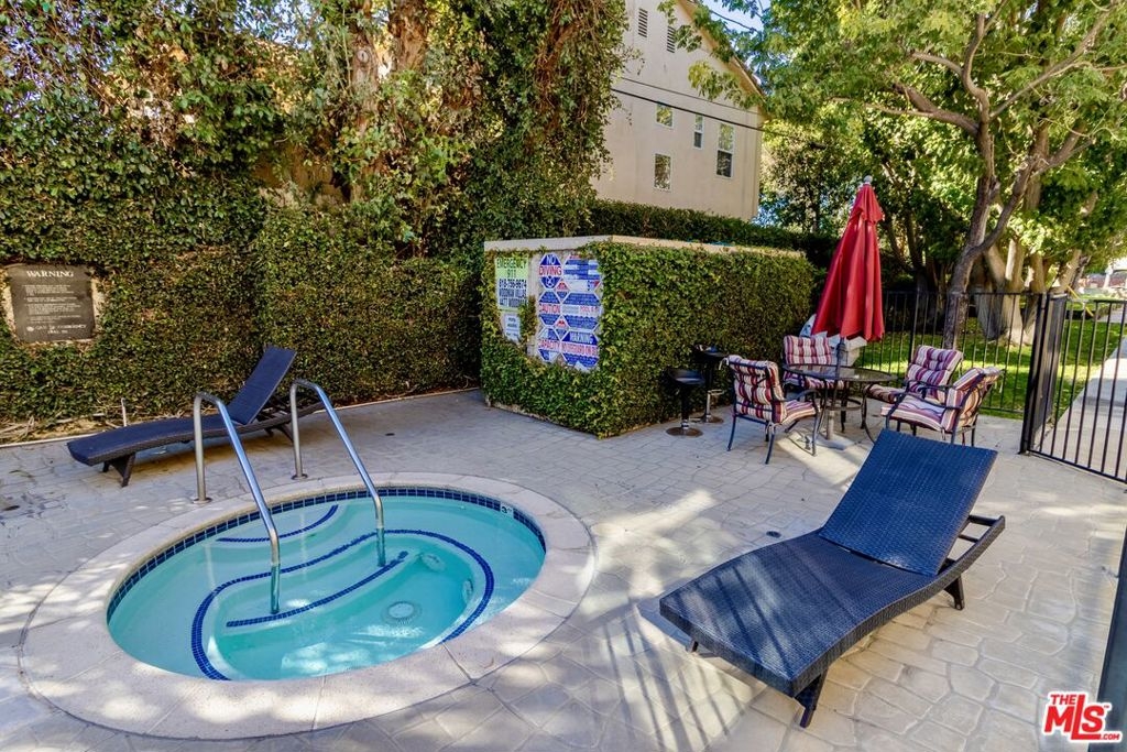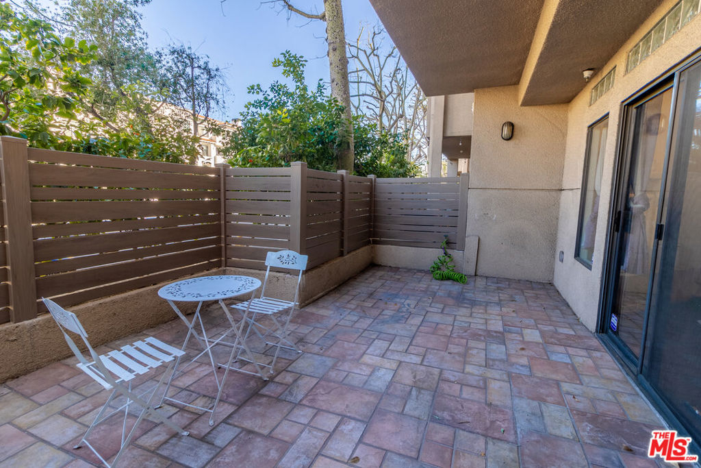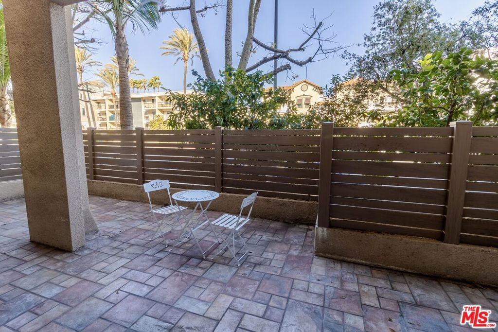 This large one bedroom, 1.5 bath condo has spacious rooms and high ceilings. The large, private patio visually increases the size of the unit with an indoor/outdoor feel. Custom ebony bamboo flooring covers the entry, kitchen, living and dining areas. The kitchen and bathrooms were updated with new fixtures, cabinetry, countertops, and glass tile. The wood framed, sliding mirror closet doors add an elegant touch to the space. The kitchen comes with stainless steel appliances including a refrigerator, dishwasher, oven with stove top, and a built-in microwave. Large 250 sq ft private patio. There is an in-unit stacked washer/dryer. The AC unit was replaced in 2022. The building has a new roof completed in 2024 and new fencing around the first-floor patios completed in 2023.There are 2 tandem parking spaces for the unit, plus guest parking and EV charging stations in the gated garage. Pool and Spa. Subject to cancellation of current escrow