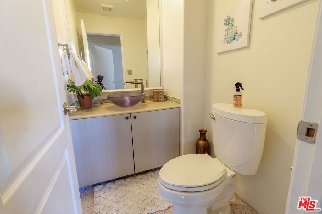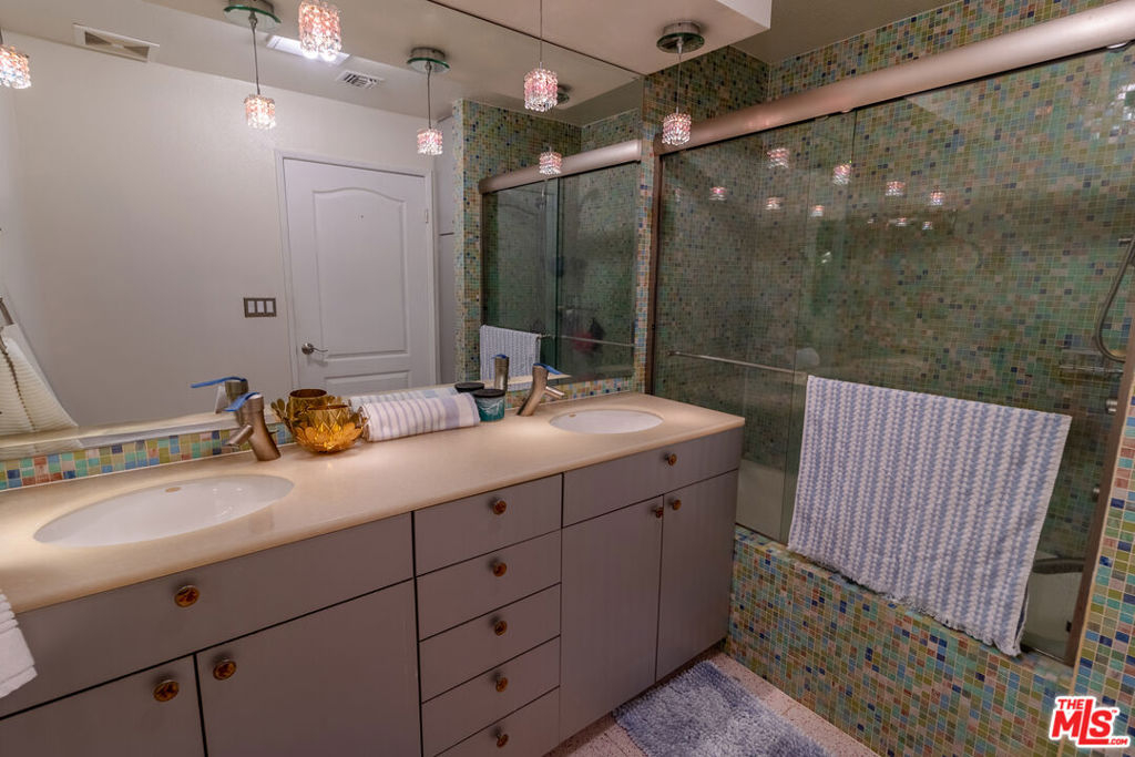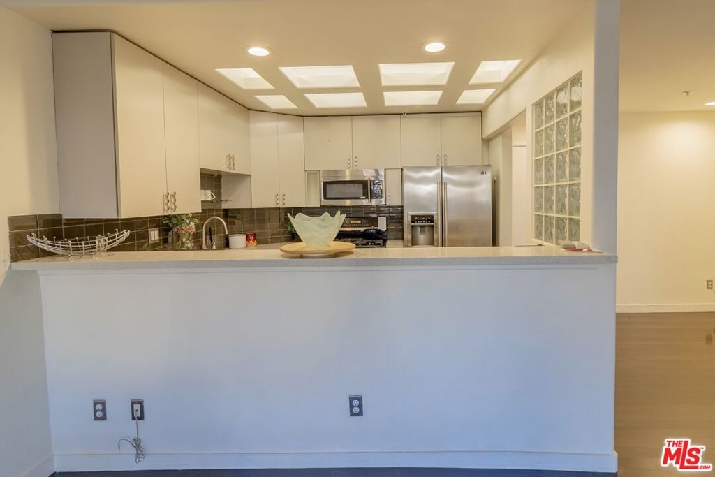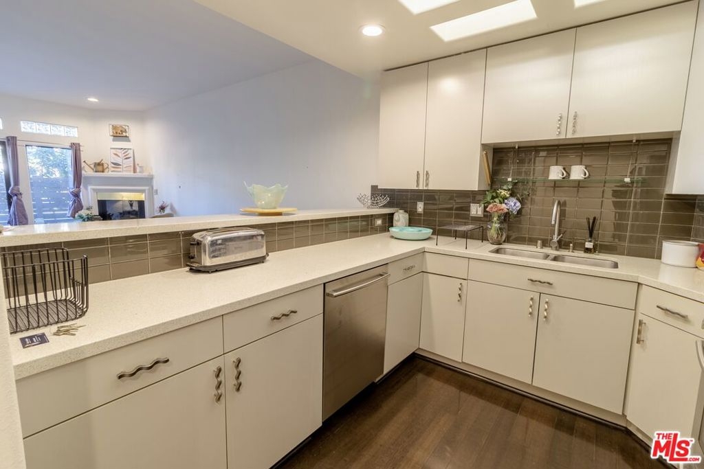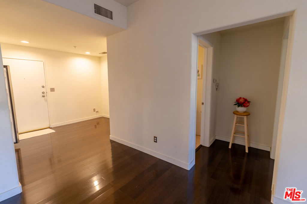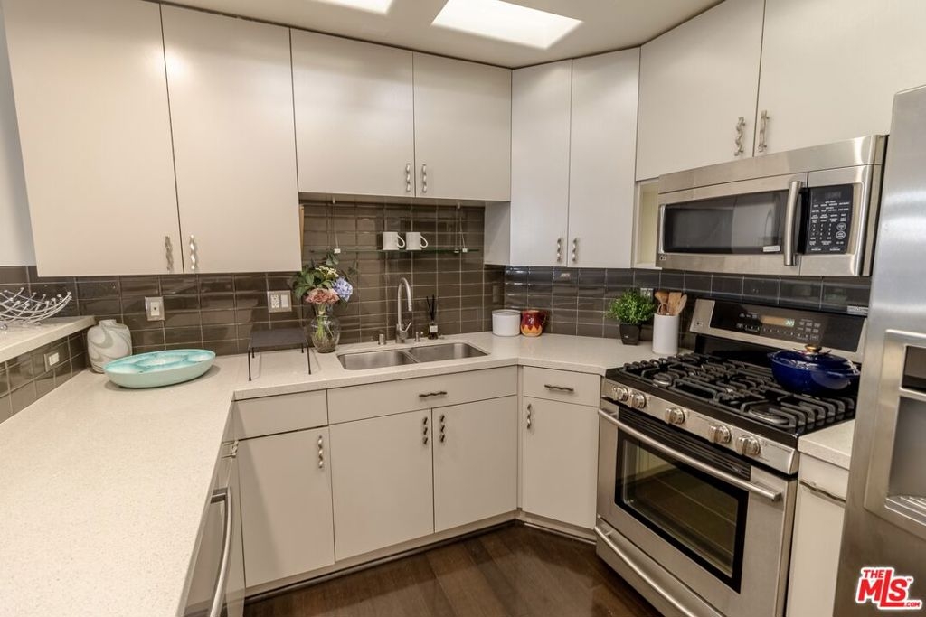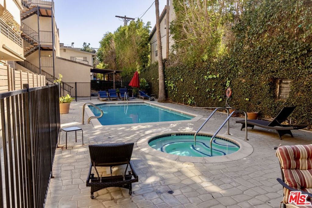 This large one bedroom, 1.5 bath condo has spacious rooms and high ceilings. The large, private patio visually increases the size of the unit with an indoor/outdoor feel. Custom ebony bamboo flooring covers the entry, kitchen, living and dining areas. The kitchen and bathrooms were updated with new fixtures, cabinetry, countertops, and glass tile. The wood framed, sliding mirror closet doors add an elegant touch to the space. The kitchen comes with stainless steel appliances including a refrigerator, dishwasher, oven with stove top, and a built-in microwave. Large 250 sq ft private patio. There is an in-unit stacked washer/dryer. The AC unit was replaced in 2022. The building has a new roof completed in 2024 and new fencing around the first-floor patios completed in 2023.There are 2 tandem parking spaces for the unit, plus guest parking and EV charging stations in the gated garage. Pool and Spa. Subject to cancellation of current escrow