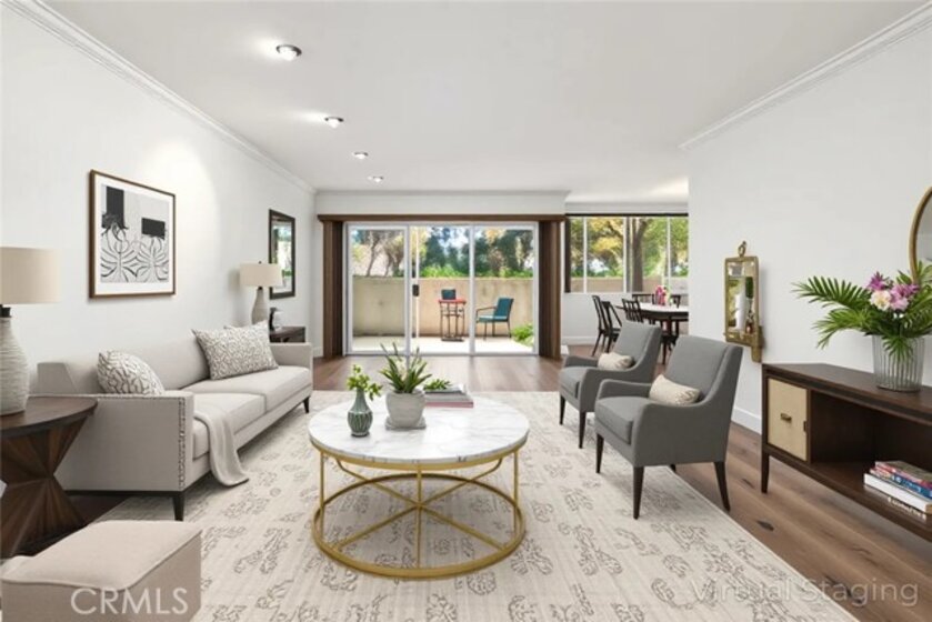 A beautiful place to live! This one bedroom, one bath located in the heart of Sherman Oaks has so much to offer. The unit has spacious and open rooms, ample morning and afternoon sunlight. Exit the living room onto your own private patio that boasts your own garden area. Plant your own paradise. The kitchen has been remodeled with quartz simulated marble counters, oven range, French door refrigerator, trash compactor, dishwasher and deep, with goose stainless steel sink. The cabinets have been customized with pull out shelves. The bathroom features, quartz counters, double sinks, tile tub/shower and recessed lighting. A living room fit for the most vibrant of people. Great wall space for artists or art enthusiasts with recessed lighting (wall spots), great for art. The unit has smooth ceilings and crown molding. The living room opens to the dining area and patio. A large primary bedroom with room for a cal-king and room to spare. Interior features: custom closets, custom shelves over the sink, pull out shelves. Community features include: pool, spa, recreation room. The laundry is community across the hall. Close to the 101 and 405 freeways, a short distance from Van Nuys/ Sherman Oaks park, blocks from Trader Joes, Whole Foods, Ralphs market and restaurants.