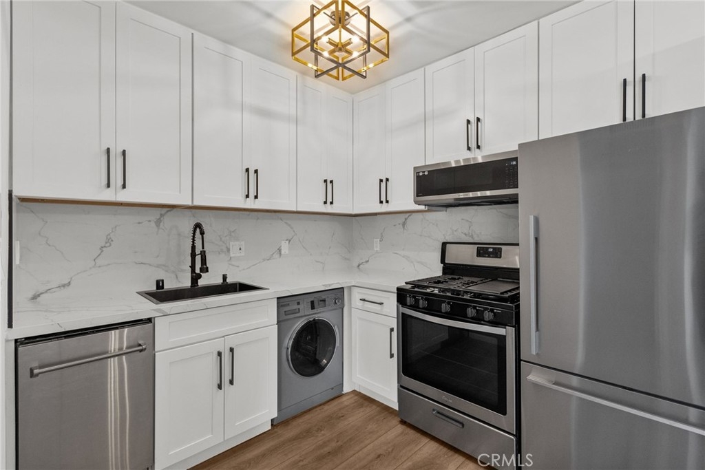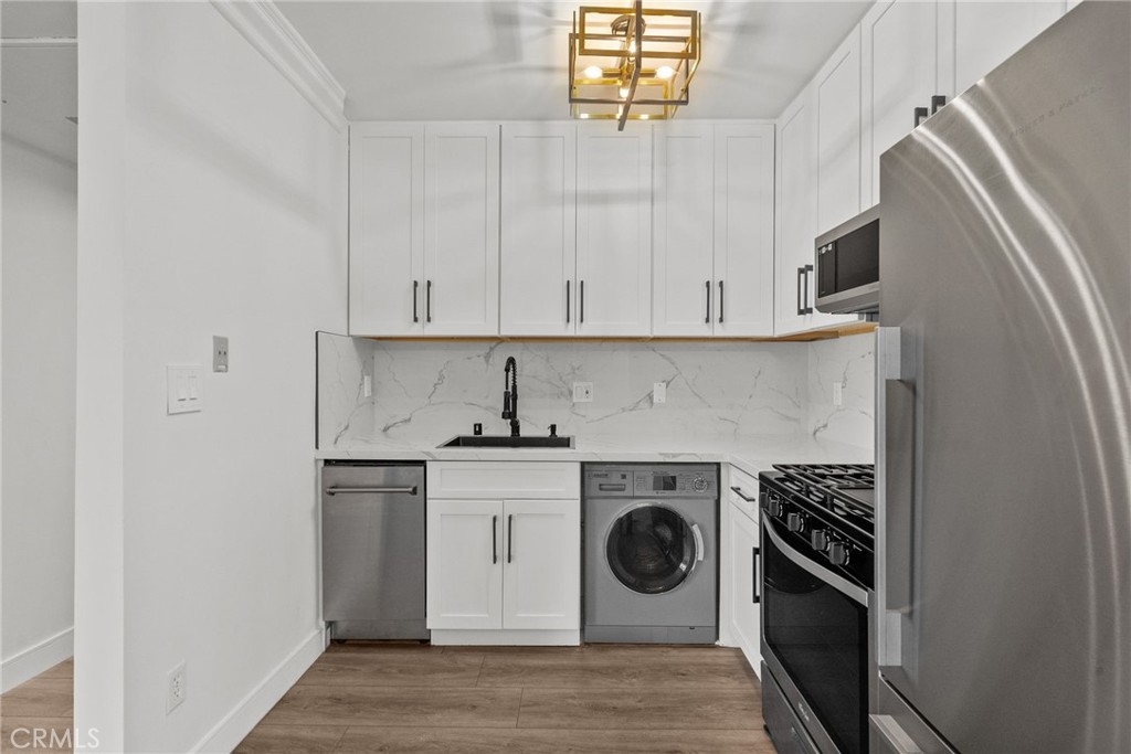 Introducing 4506 Saugus Ave #6, a charming residence nestled in the desirable neighborhood of Sherman Oaks. As you step inside, you'll be greeted by an inviting atmosphere and ample natural light filtering through the windows. The well-designed layout creates a seamless flow between the living spaces, providing a perfect setting for relaxation and everyday living. This cozy home features 1 bedroom, 1 bathroom, and offers 652 square feet of comfortable living space. The unit features in-unit laundry with an all-in-one washer/dryer combo, stainless steel appliances, and an efficiently designed kitchen with plenty of cabinet space and room for culinary endeavors. This property is conveniently situated in Sherman Oaks, offering direct and easy access to the 405 and 101 freeways as well as nearby shopping options such as Whole Foods and the Sherman Oaks Galleria. Whether you're immersing yourself in the bustling neighborhood or seeking peace in your own sanctuary, this home truly combines the best of both worlds. Don't miss out on the opportunity to call 4506 Saugus Ave #6 home. Schedule a showing today and experience the comfort and convenience this charming residence has to offer!