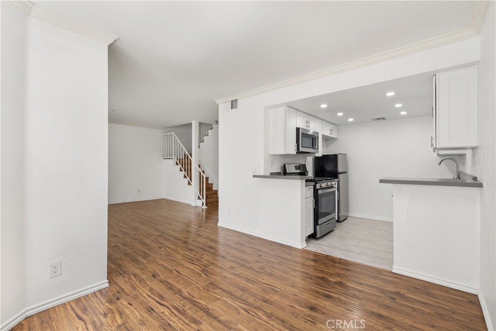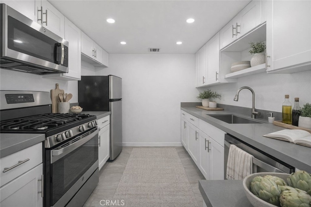 Situated in the heart of Sherman Oaks, this beautifully renovated townhome blends modern design with everyday comfort. Featuring 2 bedrooms and 1.5 bathrooms, the home offers a bright, sun-filled interior with wide-plank flooring and a spacious living room anchored by a sleek fireplace. Sliding doors open to a private patio, creating a seamless indoor-outdoor flow ideal for both relaxing and entertaining. The updated kitchen is designed with clean lines and functionality in mind, complete with stainless steel appliances and an adjoining dining area that feels both open and inviting. Upstairs, two generously sized bedrooms are complemented by thoughtfully remodeled bathrooms with modern finishes. A private rooftop deck provides an additional outdoor retreat—perfect for unwinding or enjoying the surrounding neighborhood views. Located within a gated community, the property includes secure side-by-side garage parking for added convenience. Ideally positioned just moments from Ventura Boulevard, offering easy access to popular dining hotspots, boutique shopping, cafés, and everyday conveniences. Enjoy proximity to Westfield Fashion Square, local parks, and major freeways, providing seamless connectivity to both the Westside and greater Los Angeles.
