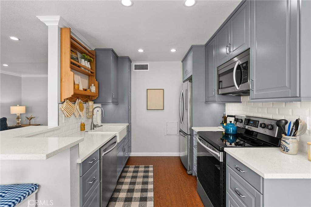 Welcome to this beautifully appointed condo in the heart of Sherman Oaks. Inside, a bright open-concept floor plan is filled with natural light, creating a warm and airy ambiance throughout. The spacious living room flows into the beautifully updated kitchen with quartz countertops and Pergo floors. Thoughtfully designed for both comfort and functionality, the space is perfect for everyday living and effortless entertaining. Step outside to your private patio—ideal for al fresco dining, morning coffee, or simply unwinding in your own tranquil setting. Ideally located within walking distance to Ventura Boulevard, you’ll enjoy effortless access to a vibrant mix of dining, shopping, and entertainment, along with nearby Trader Joe’s, Whole Foods, and convenient access to the 101 and 405 freeways. A rare opportunity to own a spacious, well-appointed condo in one of the San Fernando Valley’s most desirable neighborhoods.