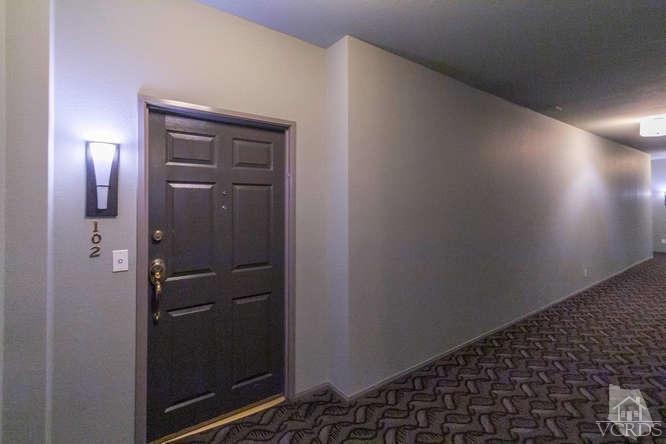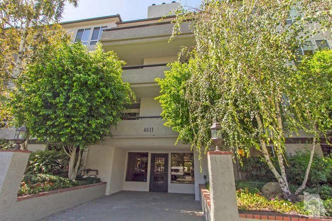 This gorgeous,bright,and sparkling end-unit condominium has the absolute best location within easy walking distance of shopping and restaurants. Featuring high ceilings,crown molding, a huge family room with over-sized fireplace, two big bedrooms (including master bedroom en suite),two full bathrooms, plantation shutters, granite kitchen counters, large dining room, and a big wrap around covered balcony. There is beautiful light from the large windows and dual sliding glass doors. One of just eighteen units,this amazing condominium is in a secured building with elevator,swimming pool,spa,exercise/rec room and lower-level secured parking. Freshly painted.