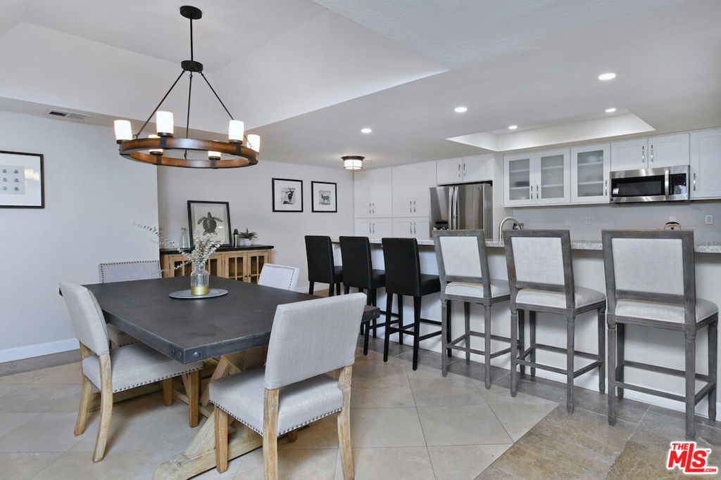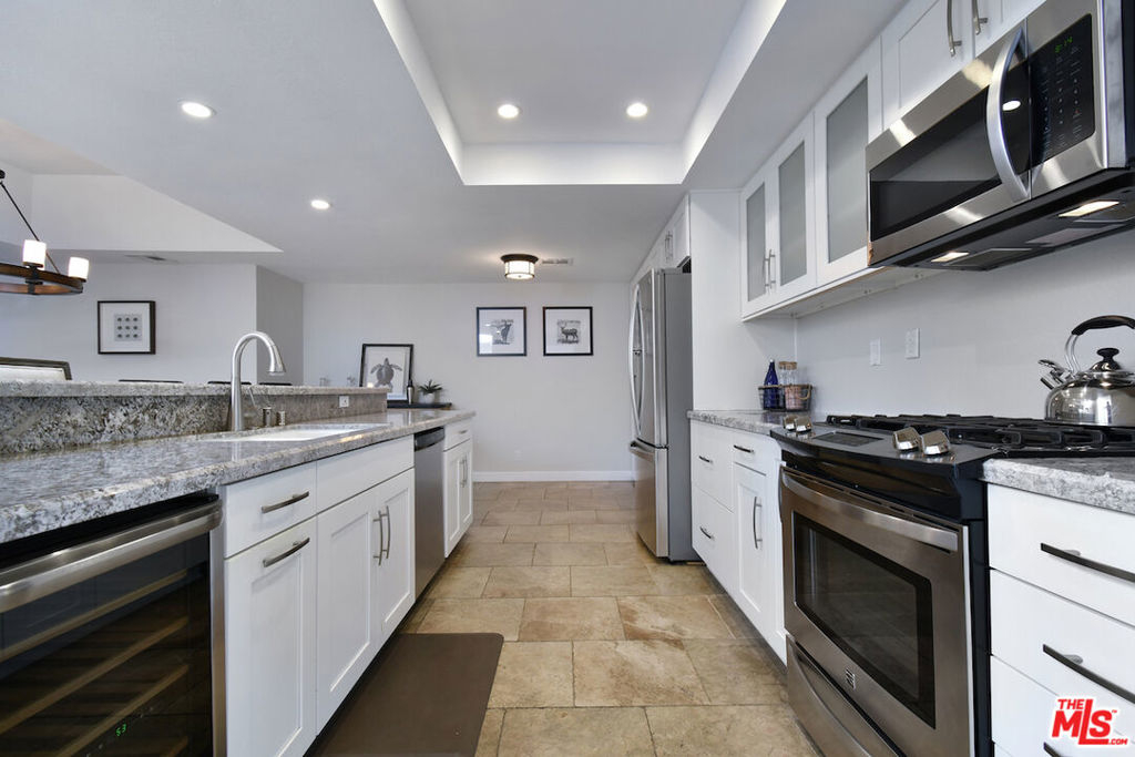 Prime Sherman Oaks / Large / Rare Top Floor / Fully Furnished End Unit! Tons of natural light w some easterly southerly treetop / mountain views and moments to Ventura Blvd, necessity shopping, entertainment, fine dining and comfort restaurants. Tile entry opens to beautiful, granite countered peninsula / island kitchen, large open dining area, living room w fireplace and balcony facing east (sunrise). Ample sized secondary bedroom w excellent tiled bath. Primary suite w balcony, wonderful two-stage full bathroom (two sinks / counter space separate from one another), two terrific, large walk-in closets and grand bedroom w fireplace (again facing east). Wood / stone / ceramic tile flooring throughout. In unit side by side washer / dryer in separate closet. Gated two-car tandem parking w storage, elevator access and designed reception area at entry. Owner visited only six times in their seven year term of ownership and it's never been short or long term rented, all appliances appear newer. Truly a beautifully furnished, top floor, end unit that feels like a massive higher end hotel suite. Sherman Oaks Charter Elementary.