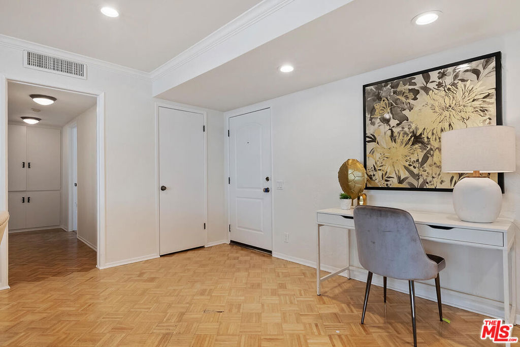 Bright and open 2 bedroom, 2 bath unit in a great Sherman Oaks location close to Ventura Blvd. Spacious floor plan with a large living space that includes room for an office area. Hardwood floors and recessed lighting, kitchen opens to the dining area and glass doors lead to a covered patio. Both bedrooms are good size and include extra large walk-in closets. The primary bedroom has its own en suite remodeled bathroom. Extra linen closet plus two more storage closets inside the unit. Well kept complex with greenery, entry lobby and swimming pool. Low monthly fee of $432.00 includes water, gas, insurance
