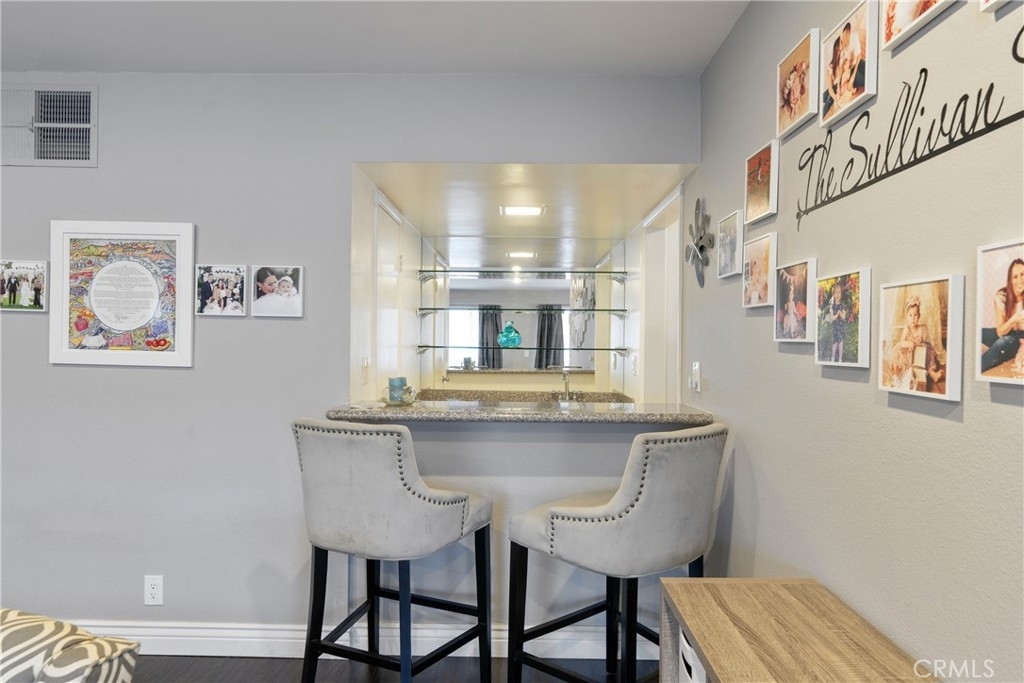 Located in an excellent part of Sherman Oaks, this amazing top floor 2 bedrooms 2 bath condo is within a short stroll to popular restaurants and shops on Ventura Blvd. One of the larger units in the building. This condo is bright and airy with an unusually large balcony, laminate wood floors, granite countertops and stainless steel appliances in the kitchen, recessed lighting, ceiling fans and includes a private washer and dryer in the unit. Additionally, the master suite has a large, walk-in closet. As well a Bar for entertaining. The condo complex has great amenities including an elevator, pool, spa, recreation room, and gated parking with two tandem spots (4 parking spots total).