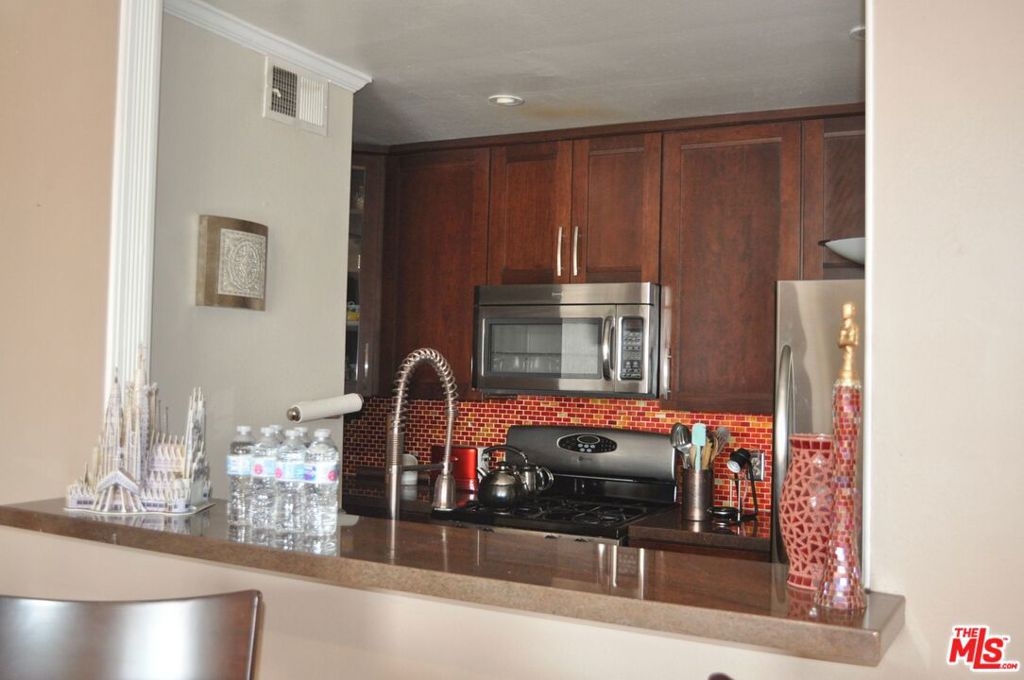 THIS THE UNIT YOU HAVE BEEN WAITING FOR!!! Beautiful front unit 1 bedroom 1 bath condo in the heart of Sherman Oaks. Bright Living room with fireplace and a large balcony with street views. Updated kitchen with dishwasher and stainless appliances. Enter THE Master suite with gorgeous spa type bathroom and balcony access. 2 car tandem parking spaces and community laundry on each floor. Building amenities: Pool, Hot tub and subterranean community garage with secured control access. Hot location, walking distance to the new Pavillon and Starbucks...Don't miss it.