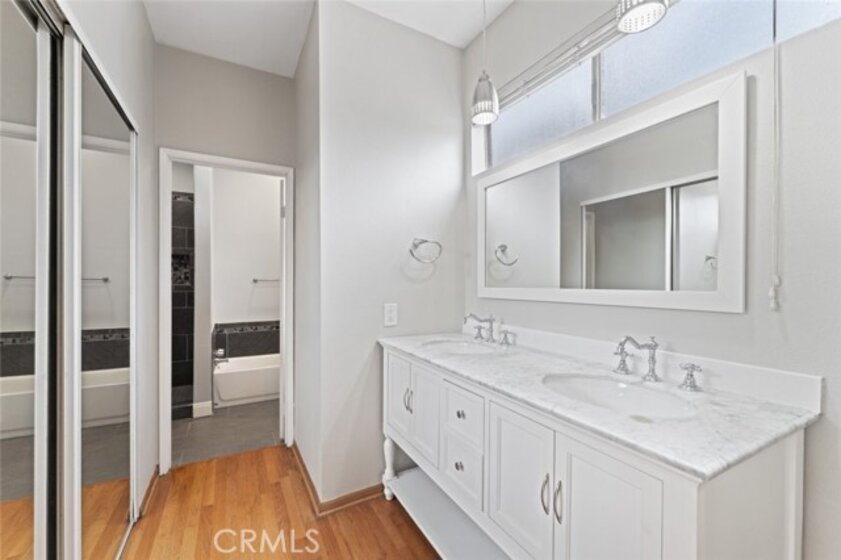 In the heart of Sherman Oaks, minutes away from shops, diners, and entertainment, sits a 1118 sqft, 2-bedroom, 2-bathroom condominium, move in ready for the next lucky buyer to make their mark. Double door entry greets you to walnut toned laminate flooring all throughout the open space within an easy flow to every room. A lengthy kitchen with tile flooring, for the convenience of easy maintenance, stainless-steel built-in appliance, styled with gray countertops and mahogany toned cabinetry. A bathroom at the right of entry that connects to the first bedroom, leading down the hallway to the primary bedroom, which incudes an en suite bathroom. An individual laundry room following the kitchen, with a washer/dryer hookup and access to a large balcony. Unit also includes 2 assigned parking spots in a subterranean parking garage.