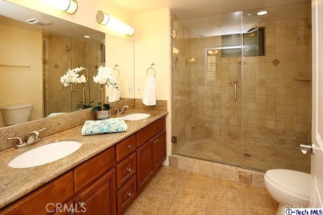 Stunning upscale Villa Julietta unit in a newer 2009 luxurious building with Tuscan Architectural features. 3 Bedrooms, 2 Bathrooms, 1373 sqft living space bathed in natural light with an open and spacious floor plan. The master bedroom has a large walk-in closet, balcony, & a luxurious bathroom with natural stone counters, over sized shower & dual vanities. The secondary bedrooms are on the opposite side away from the Master Bedroom to provide you with more tranquility. This property also features custom plantation shutters, newer and updated appliances, including washer and dryer and recessed lighting. Your close proximity to Ventura Blvd with trendy shops and restaurants make life a breeze! Freshly painted, Turn-key and move in ready! The Villa Julietta offers a gym, sauna, rec room, a sun deck, 2 parking spaces & 8 guest parking. A secure building & close to the Westside!