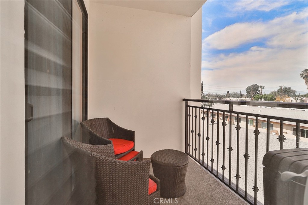 Enjoy top-floor living with valley views in this light-filled penthouse at Villa Julietta, offering approximately 1,330 sq. ft. of thoughtfully designed living space in one of Sherman Oaks’ most walkable locations. With three bedrooms and two bathrooms, the open-concept layout creates a natural flow between the upgraded kitchen—featuring granite countertops, stainless steel appliances, and a breakfast bar—and the living area with a fireplace and private balcony. Elevated treetop scenery and abundant natural light create a sense of calm and privacy throughout. The oversized primary suite feels like a true retreat, complete with a walk-in closet, balcony, and a spa-inspired bathroom with dual vanities and a stone shower. Two additional bedrooms provide flexibility for guests, roommates, or a home office. Practical comforts include in-unit laundry, central A/C, recessed lighting, secure entry, and two gated parking spaces with ample guest parking. The building offers accessible entry with a wheelchair ramp and elevator service to the fourth floor, making everyday living convenient and accessible. Residents enjoy amenities such as a fitness center, sauna, and sundeck, with HOA dues that include earthquake insurance. Located just minutes from the 405 and 101 freeways, commuting is simple while still being steps from Ventura Blvd’s popular dining, coffee shops, boutiques, and nightlife. This is a rare opportunity to own a move-in-ready top-floor home where location, views, and everyday comfort come together.