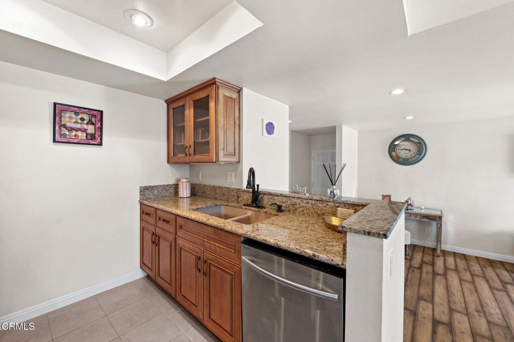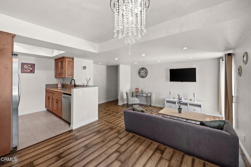 Stunningly updated condo in the heart of Sherman Oaks, offering a vibrant city lifestyle with easy access to major freeways, shopping, dining and whole food. This bright and airy front unit greets you with an inviting entryway leading to a spacious living and dining area, perfect for entertaining.Features include: a modern kitchen with granite countertops, newer cabinets, and stainless steel appliances; a walk-in closet; engineered wood floors; recessed lighting; designer paint; and central AC. With only one shared walll and access to a well-maintained gym within the complex this home offers both comfort and convenience. Plus, it comes with two parking spots .This turnkey unit is ready for a discerning buyer to move in and enjoy all the wonderful amenities it has to offer!