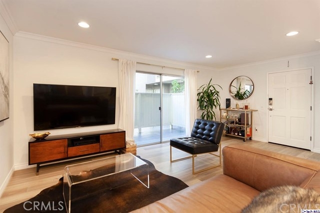 Beautifully Remodeled 1 BD/1 BA in the heart of Sherman Oaks with shopping, restaurants & Whole Foods just steps away! Recently updated with Luxury Vinyl Floors, Recessed Lights & New Moldings in the open-concept living area, with direct access to a Private Patioperfect for BBQ's! Split level, with a small step up to the Fully Remodeled Kitchen featuring sleek, Modern Cabinets, White Appliances & Quartz countertop with breakfast bar! Designed for entertaining, the kitchen opens to an oversized dining area while overlooking the living room. Down the hall an updated bathroom with New Tile Floors, Wide Vanity, LED lit Mirrors & shower upgrades. Comfortably sized Bedroom, featuring DUAL CLOSETS; a walk-in with built-in organizers & a sliding door closetFresh paint, recessed lights, ceiling fan & lots of natural sunlight! Convenience features such as a NEST thermostat & Smart Door Locks to make life easy! Hard to find TWO PARKING SPACES in a secured garage. Community amenities include a Fitness Center/Gym, Laundry Room & Recreation Room all at an incredibly Low HOA!